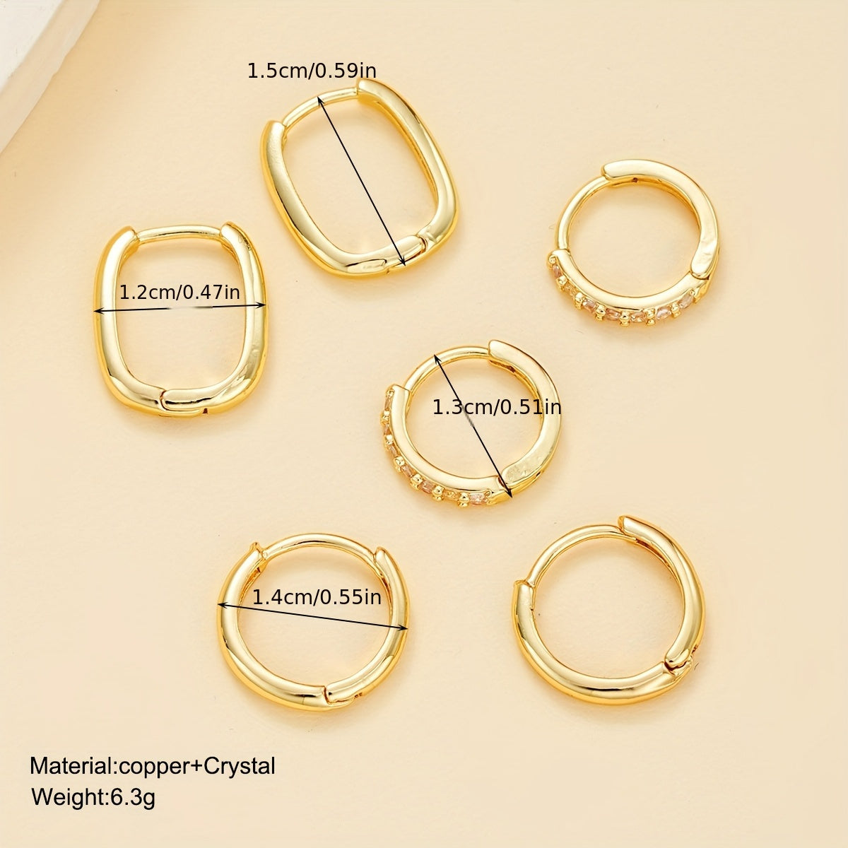 6-Piece Hoop Earrings with Zirconia - Copper & Stainless Steel