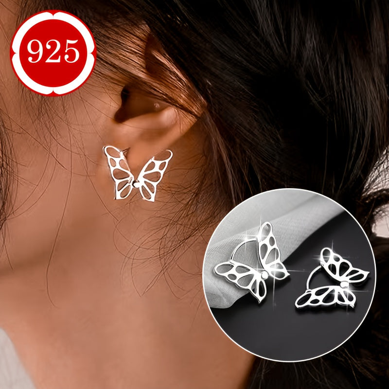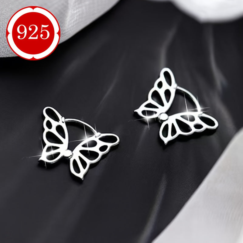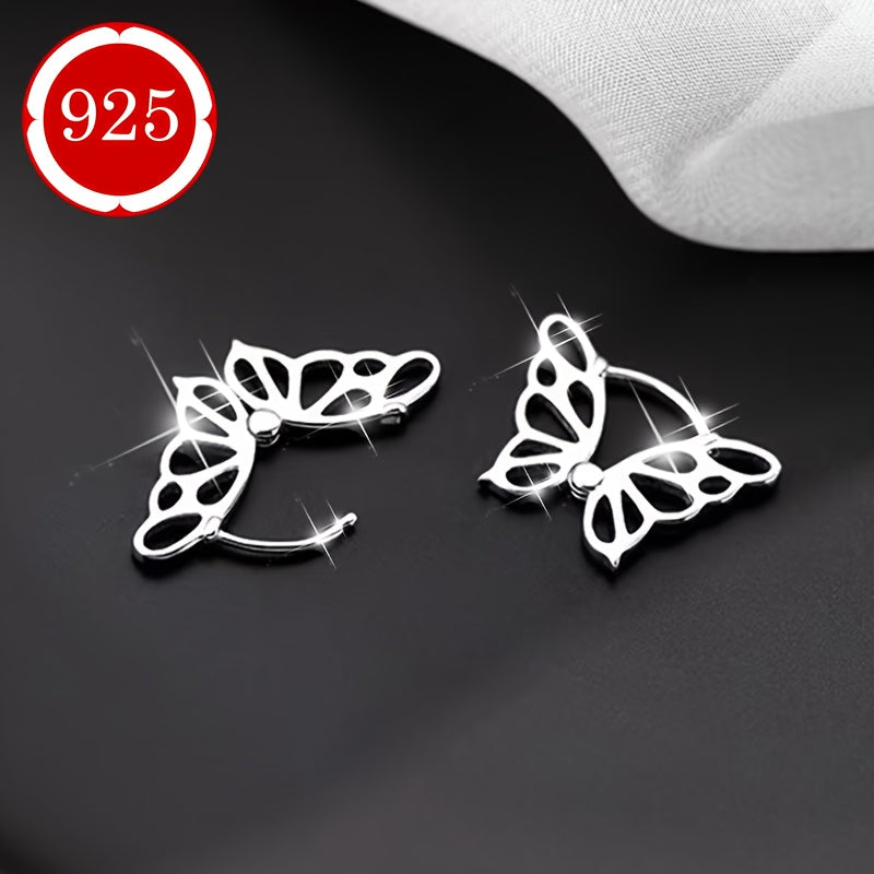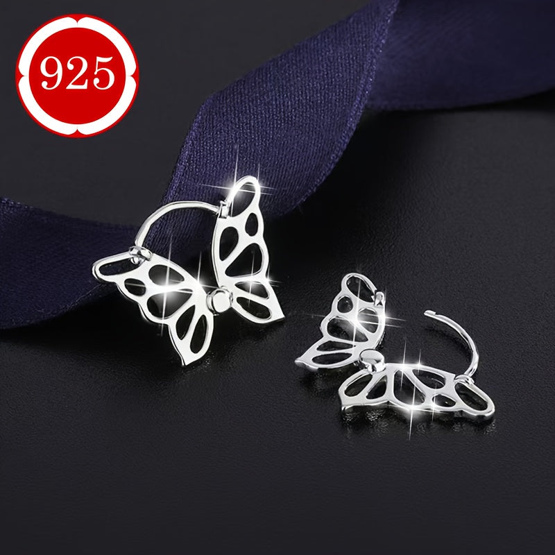 925 Silver Butterfly Ear Clasp Retro Earrings for Women