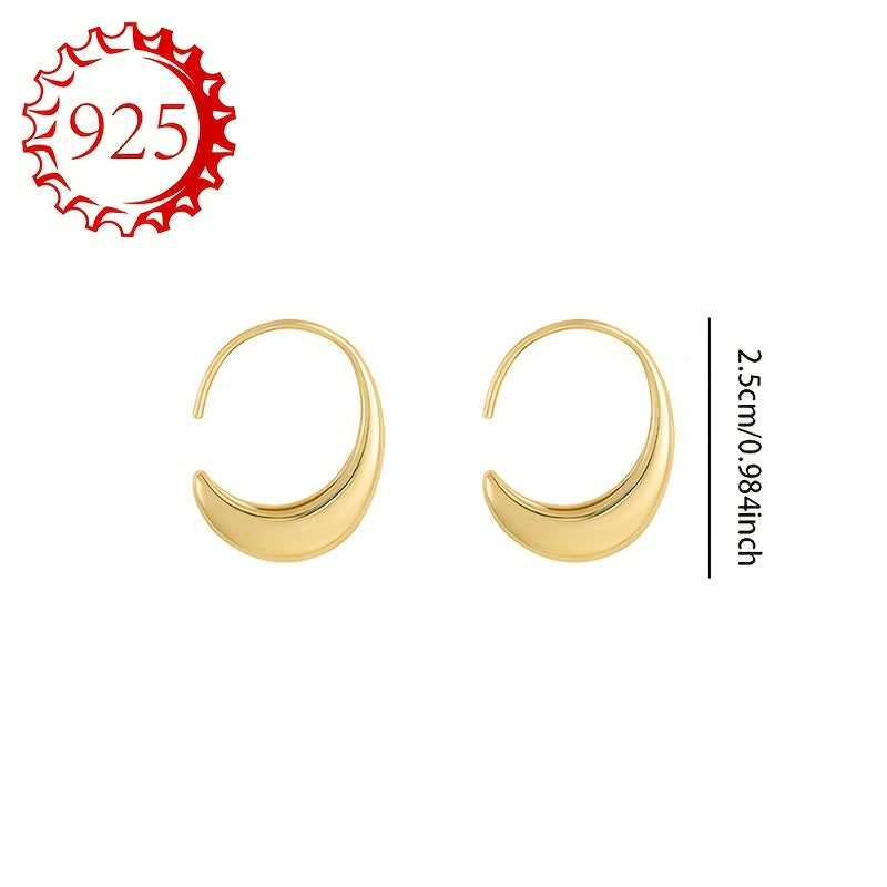 This pair of 925 silver hoop earrings features a sleek and unique curved design, perfect for versatile elegance. Ideal for couples, friends, or any special occasion.