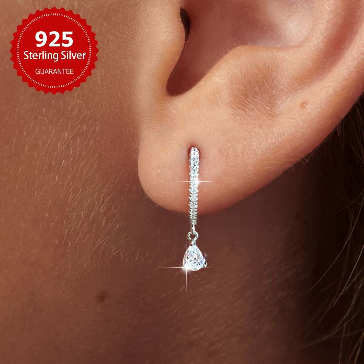Stunning 925 sterling silver drop earrings featuring sparkling cubic zirconia stones. Ideal for weddings, Valentine's Day, or anniversaries. A perfect gift for women.