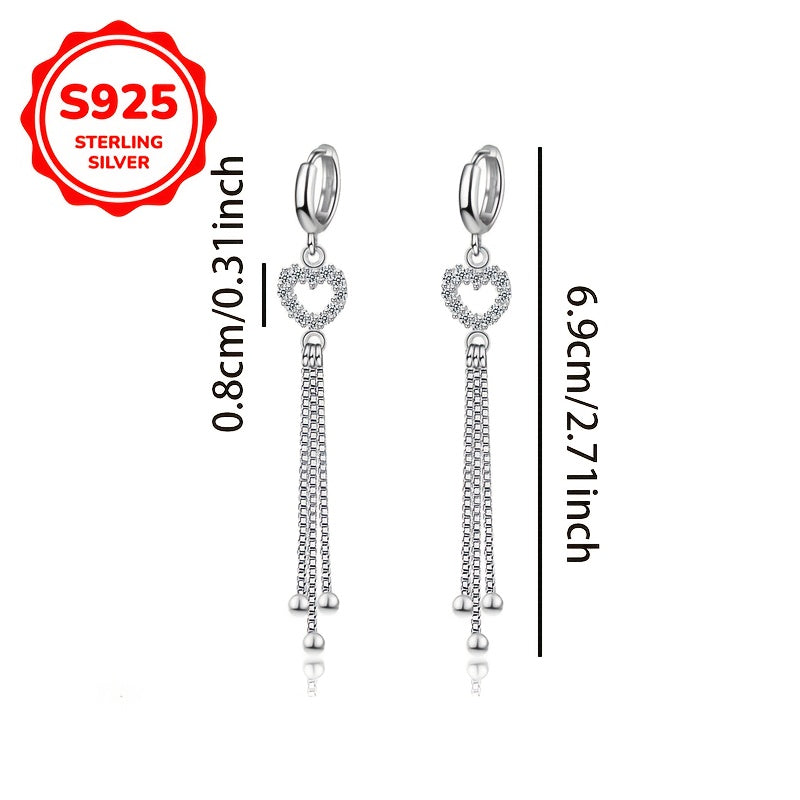 Hypoallergenic 925 silver heart stud earrings pair with round bead tassel drop earrings. Minimalist design, perfect for all seasons. Ideal gift for any occasion.