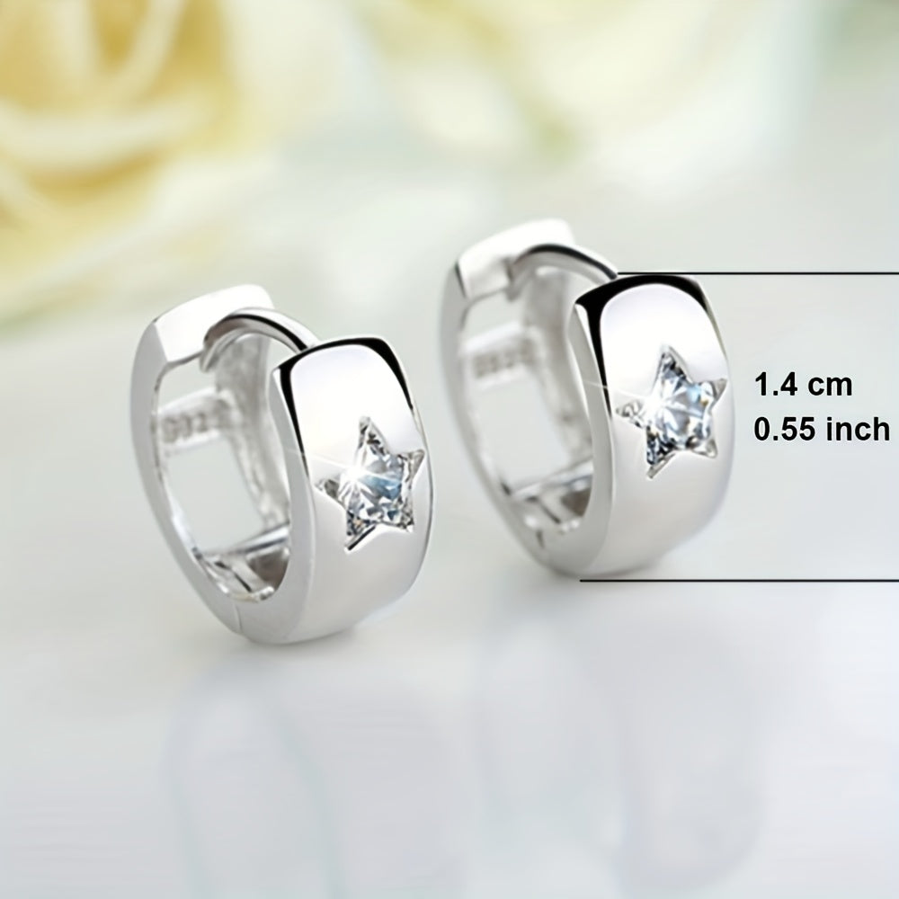 925 Silver Hoop Earrings Star Pattern Zircon Bridal Jewelry