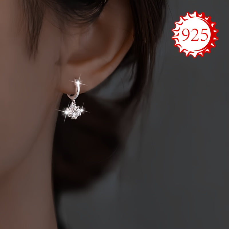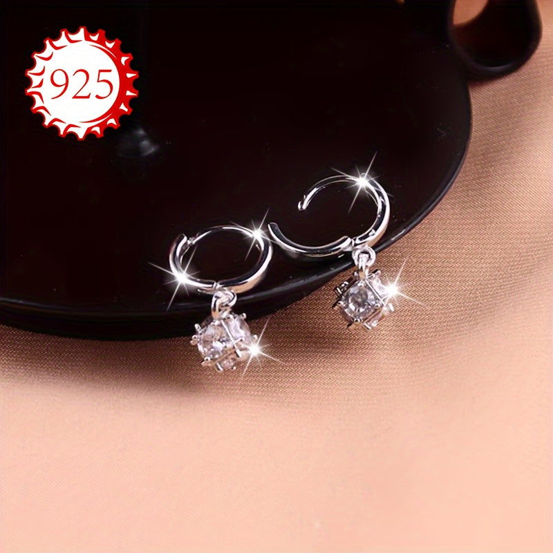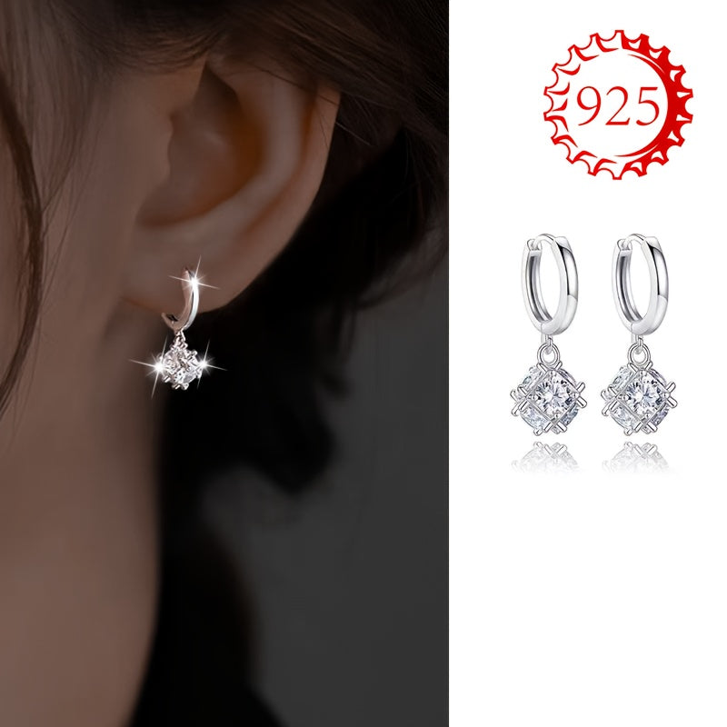 These earrings are made of 925 silver, perfect for those with sensitive skin. The design features a square round ball, making them light and versatile. Ideal for daily wear or special occasions like weddings.