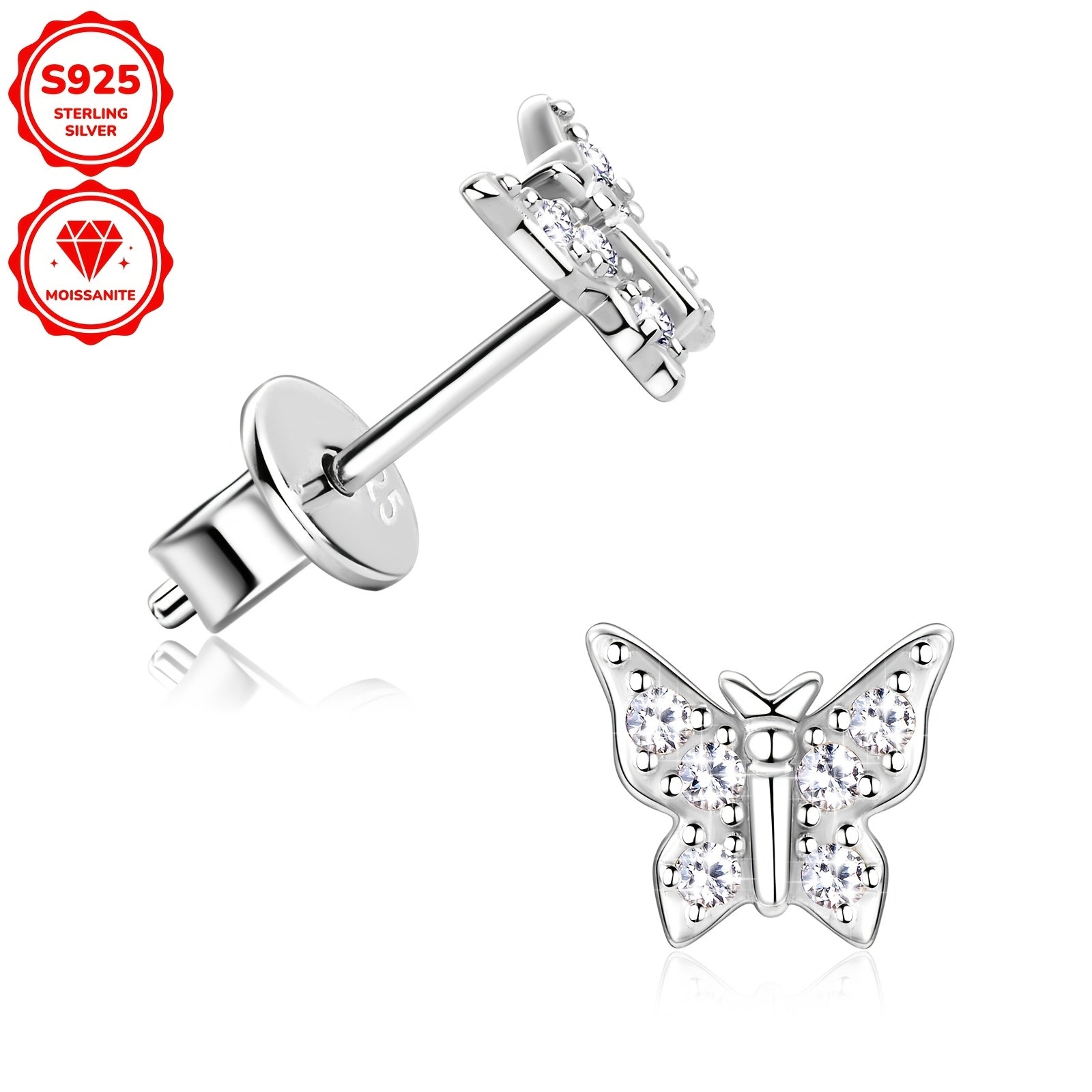 Add a touch of nature-inspired elegance to your look with these beautiful butterfly stud earrings. Made with 925 silver and moissanite stones, these earrings are plated with 14K gold for a luxurious finish.