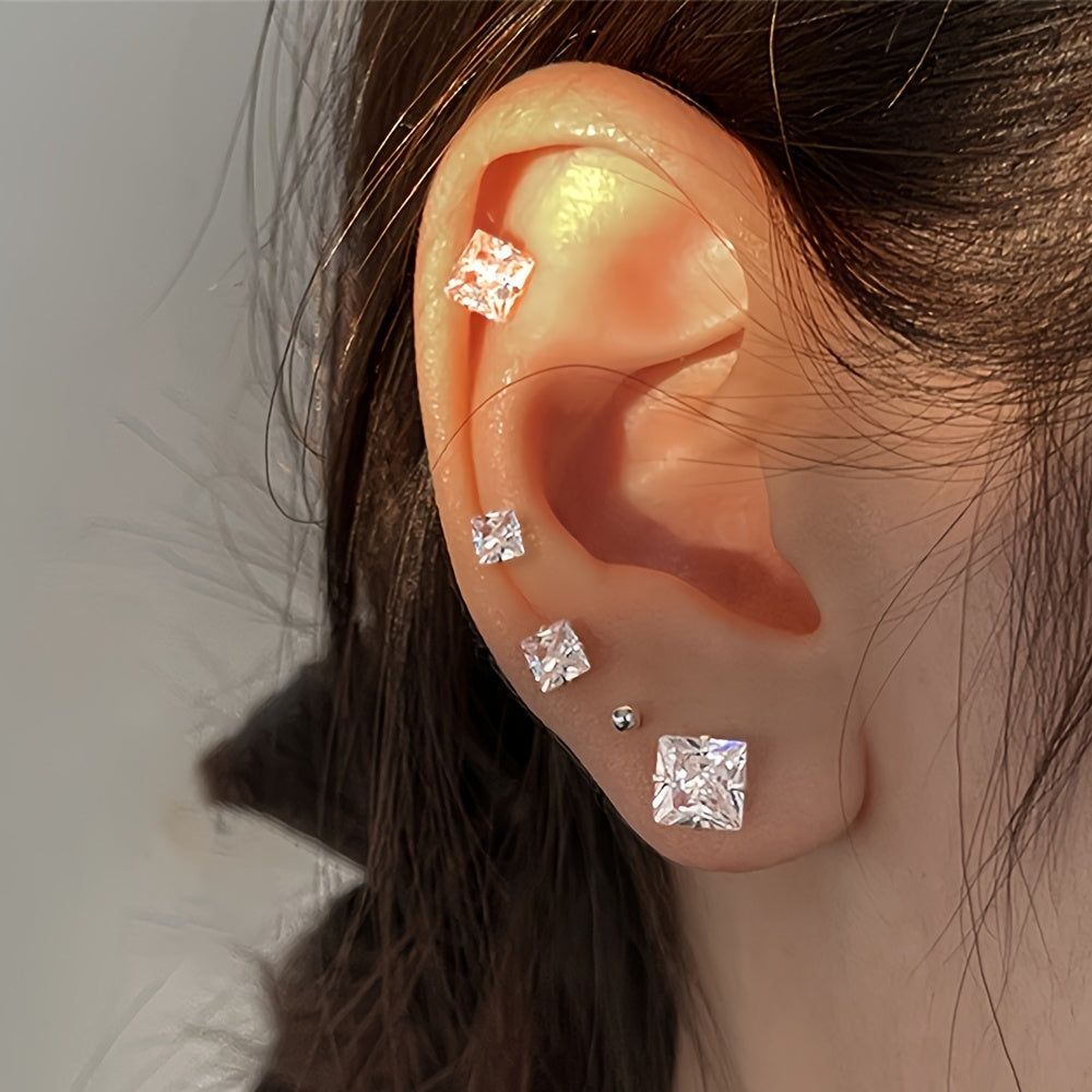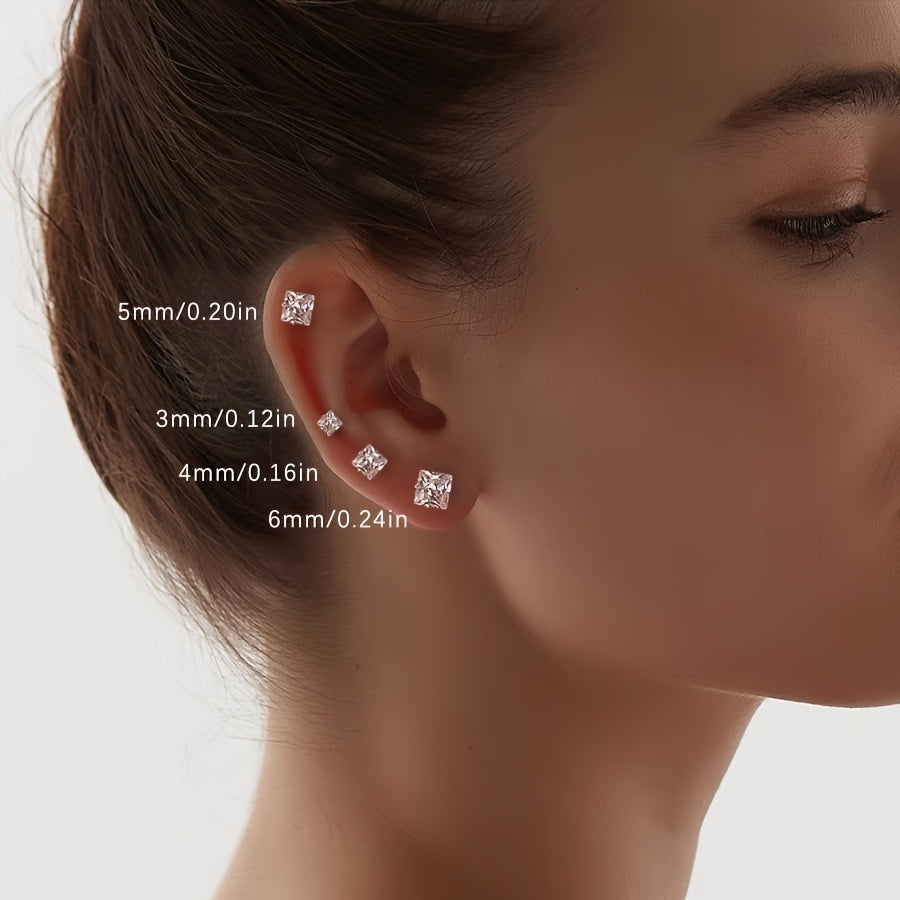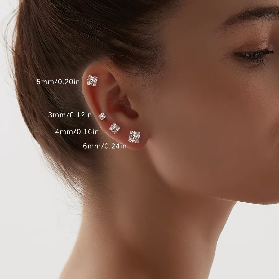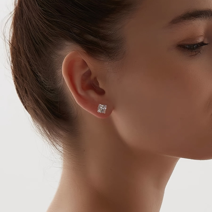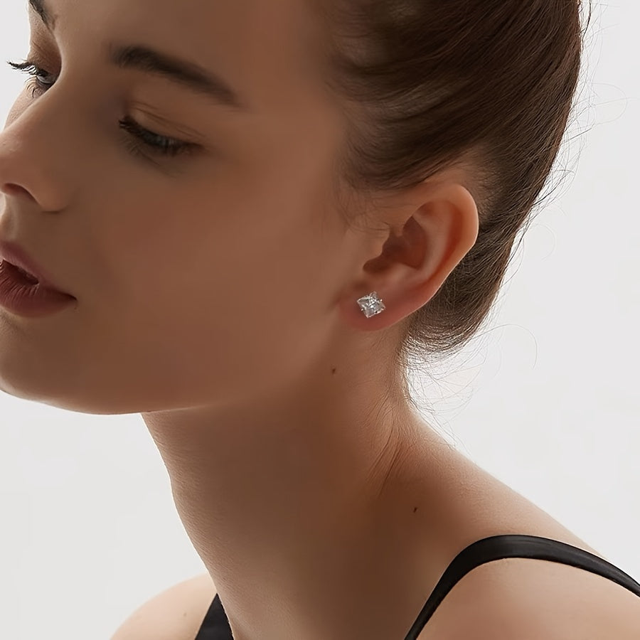 Add a touch of elegance to your daily look with these stunning 925 sterling silver plated earrings featuring 6mm square synthetic zirconia. A perfect gift for any occasion.