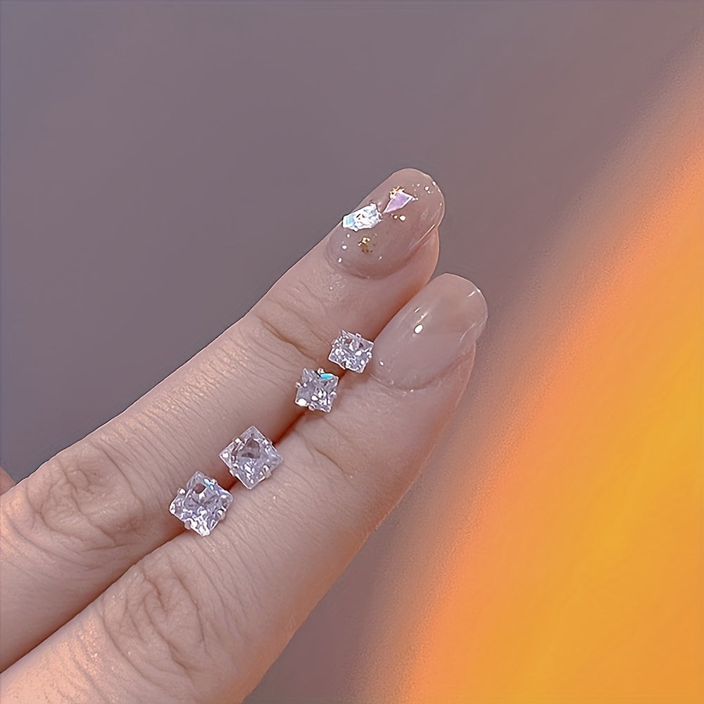 925 Silver Plated Zirconia Earrings 6mm Square Studs