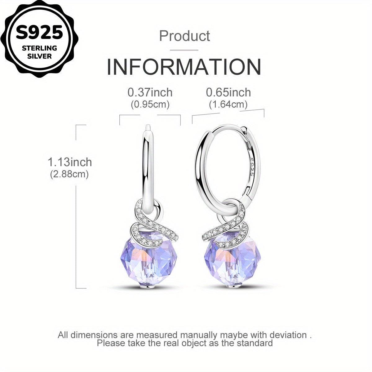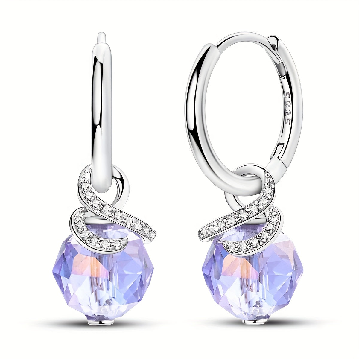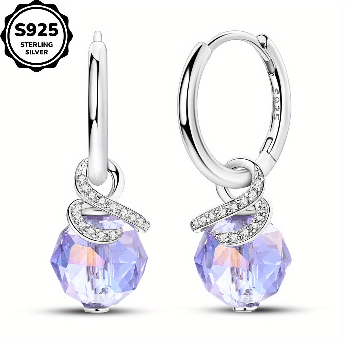 925 Silver Purple Hoop Earrings Cubic Zirconia Women's Gift
