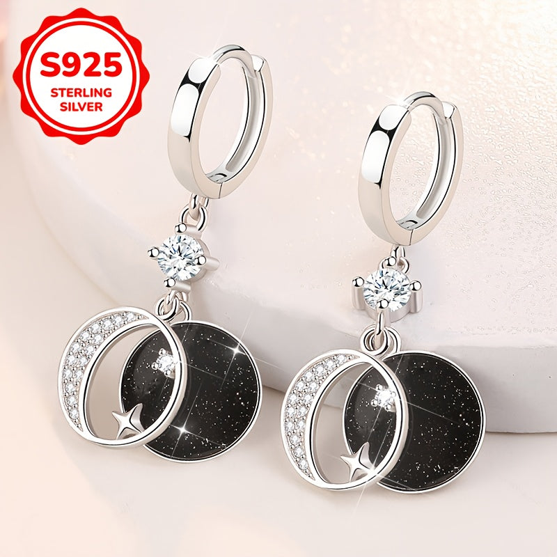 Add a touch of celestial charm to your look with these 925 silver starry sky earrings. These lightweight earrings are hypoallergenic and perfect for any occasion.
