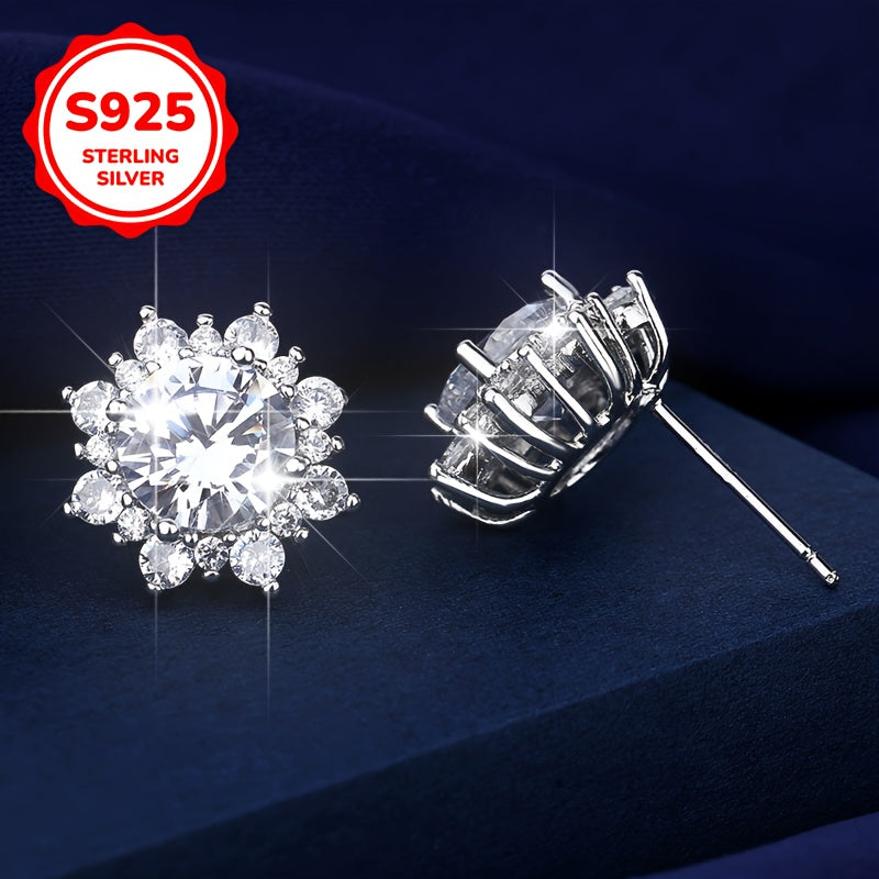 These stylish sunflower earrings are made of 925 silver and feature moissanite stones. The design is versatile and perfect for everyday wear.