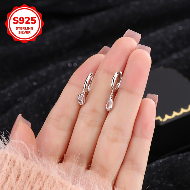 These elegant teardrop pendant earrings are made of 925 sterling silver, perfect for those with sensitive skin. Ideal gift for girlfriend, lover, wife, mother, or sister for any occasion.