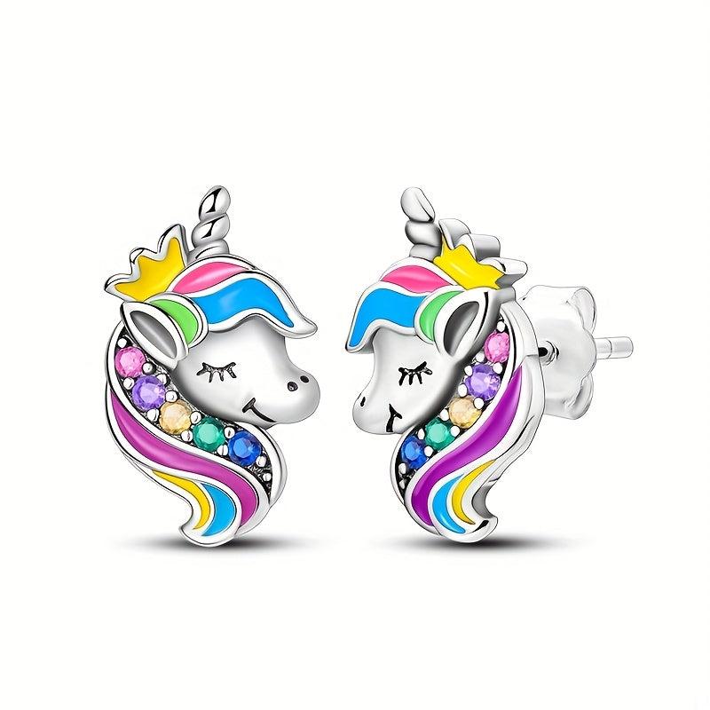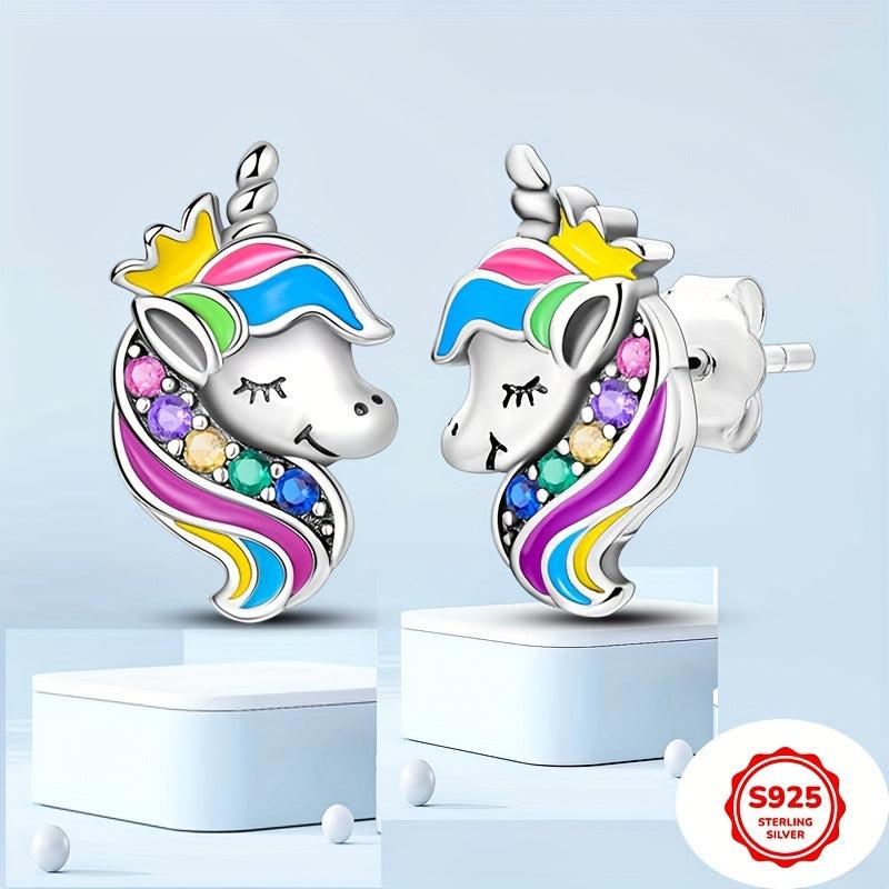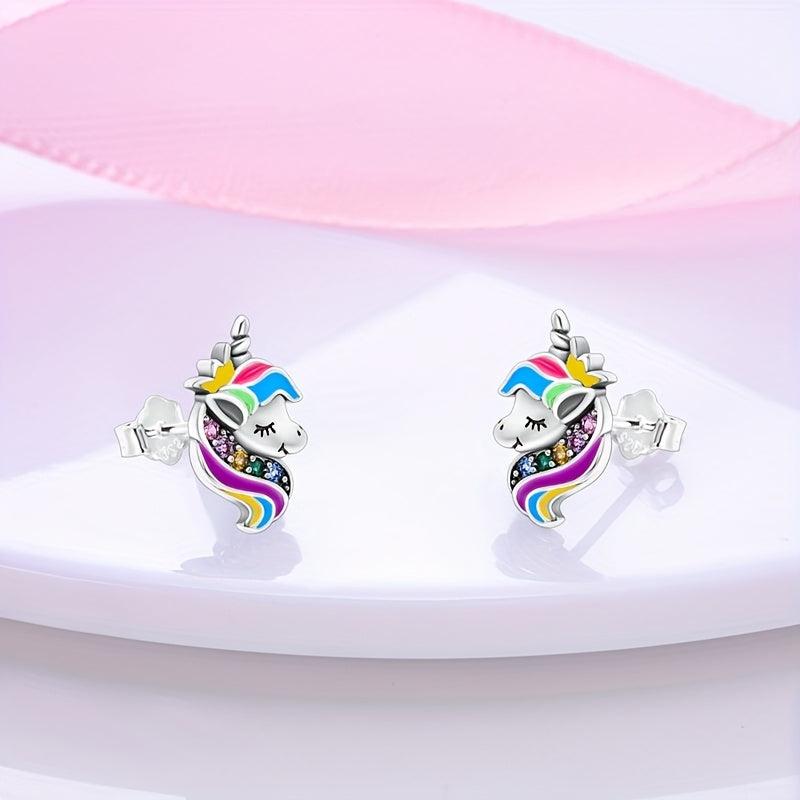 These unicorn earrings are made of 925 silver with synthetic zirconia inlay, perfect for weddings, parties, DIY projects, festivals, and birthdays.
