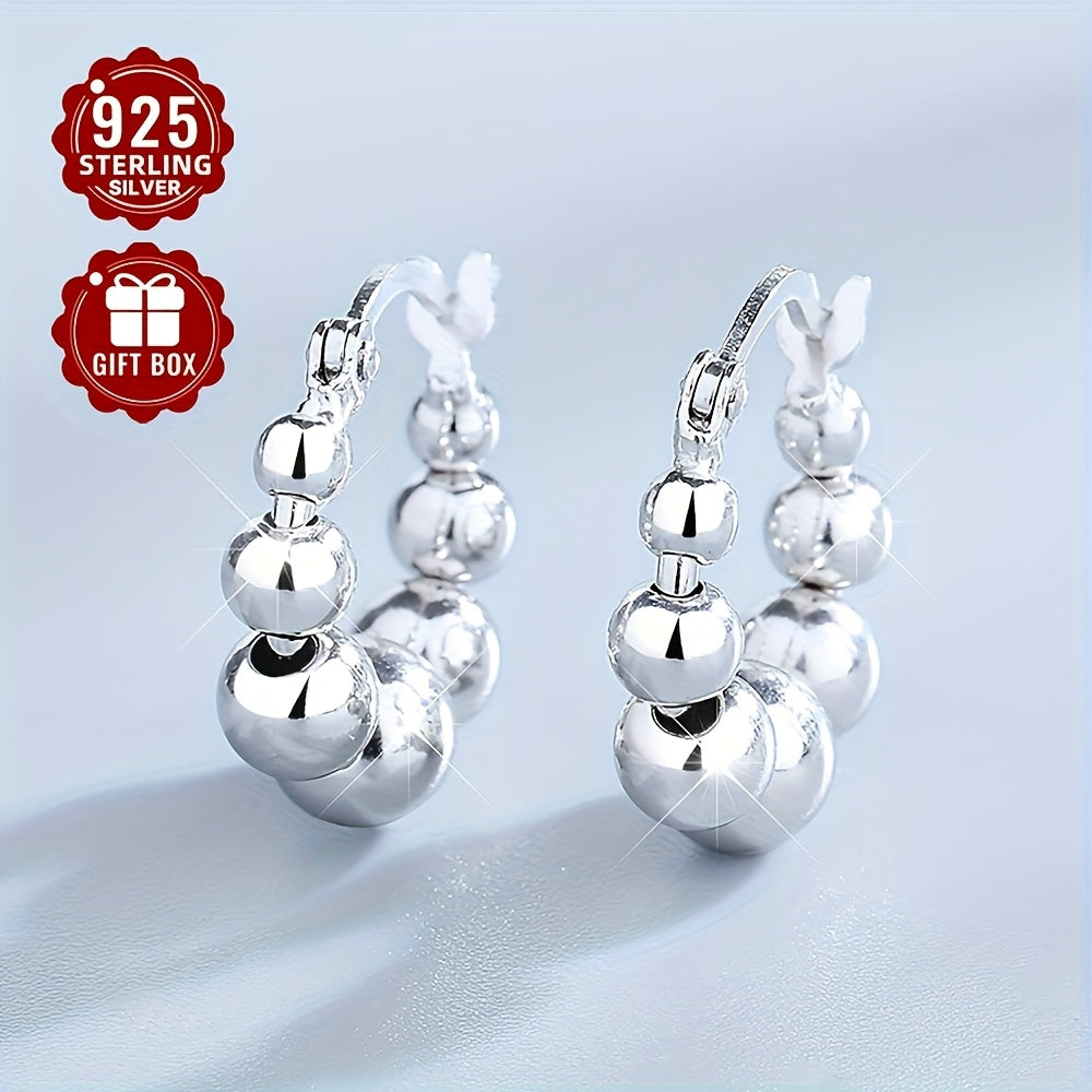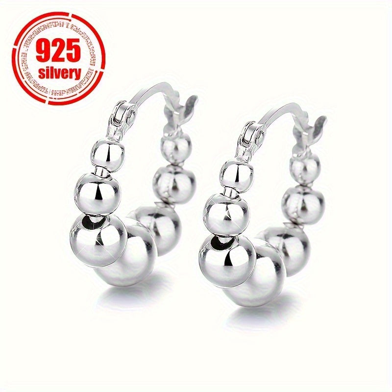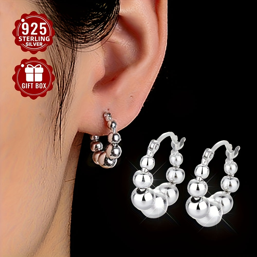 These classic round bead hoop earrings are perfect for casual attire and parties. Made of 925 sterling silver, these earrings are ideal for commuting.