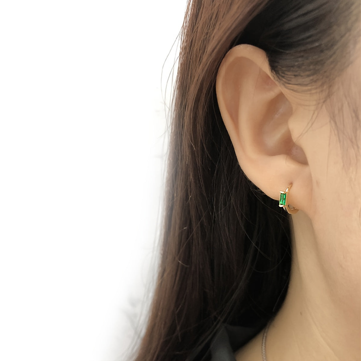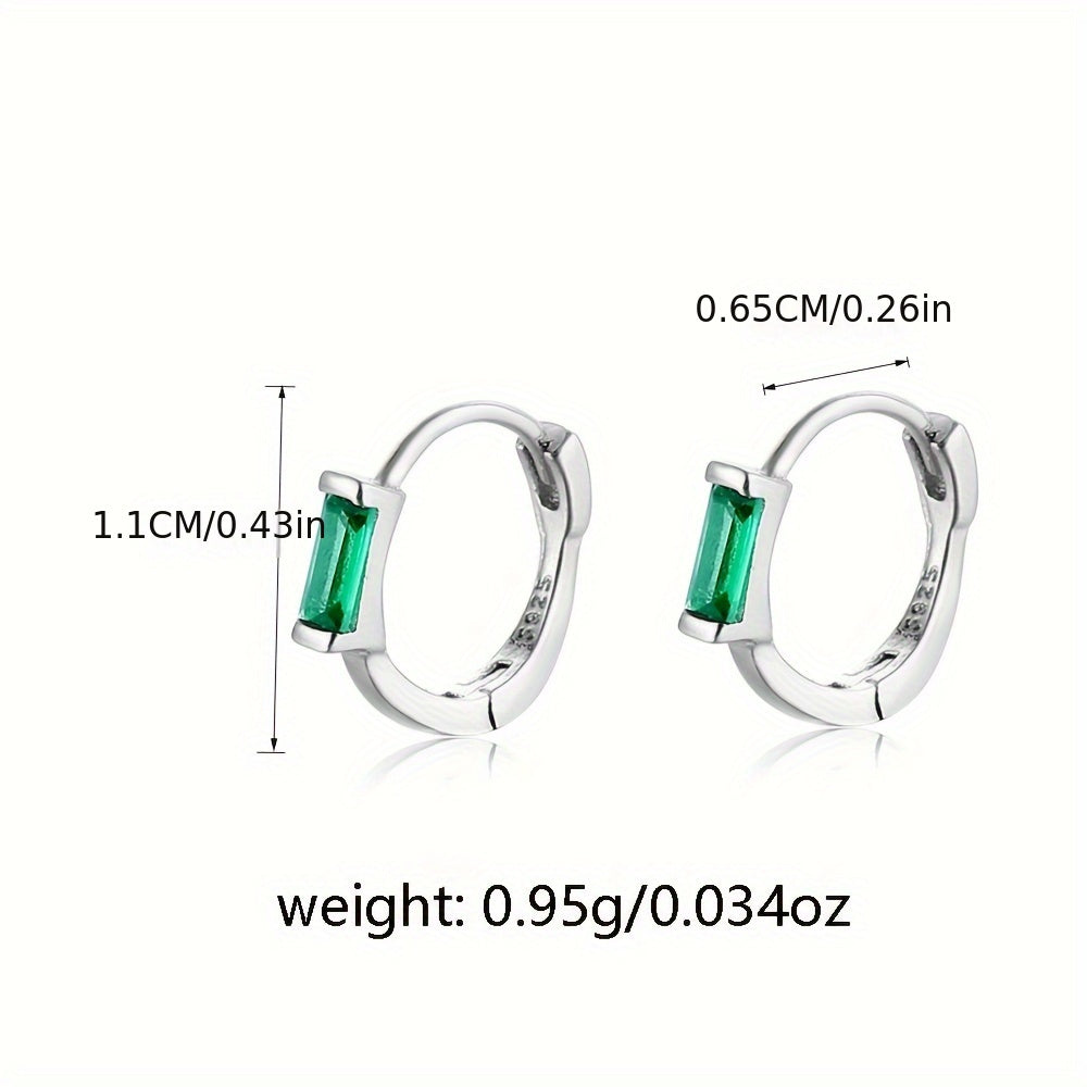 Add a touch of elegance to your daily attire with these stylish silvery earrings featuring synthetic green zirconia. Perfect for any occasion.