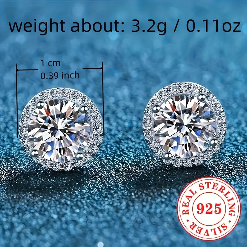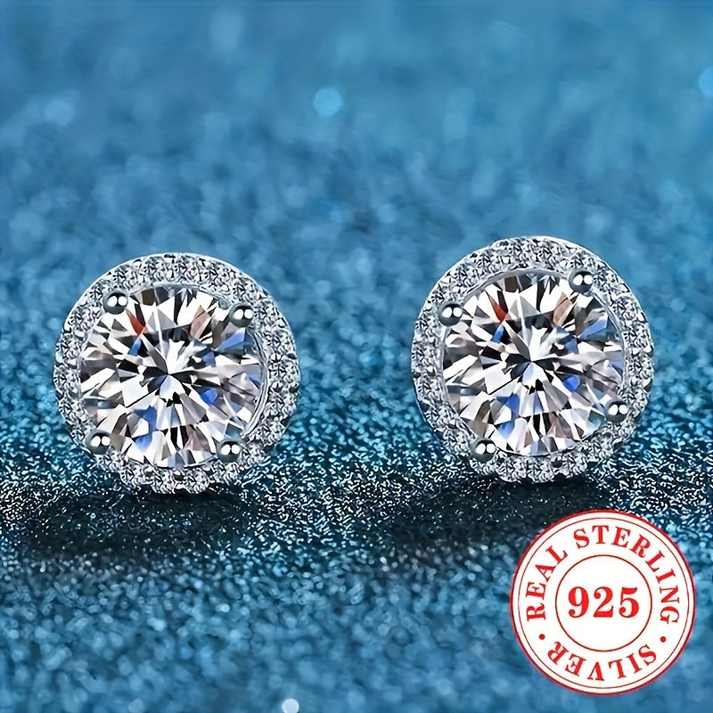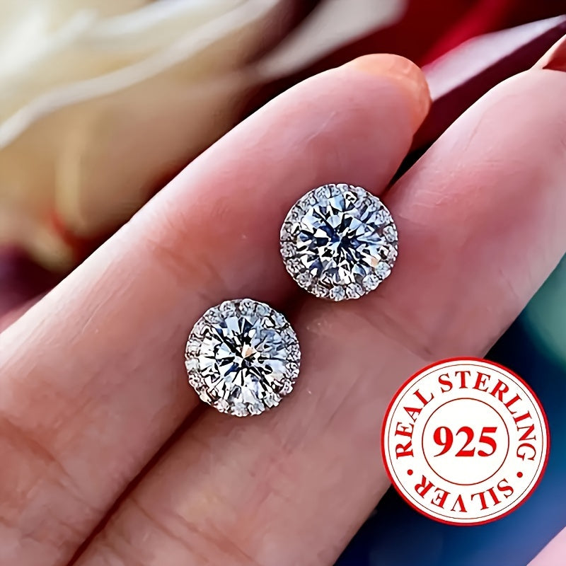 These elegant stud earrings are made of 925 sterling silver and feature synthetic zirconia stones, perfect for weddings and engagements.