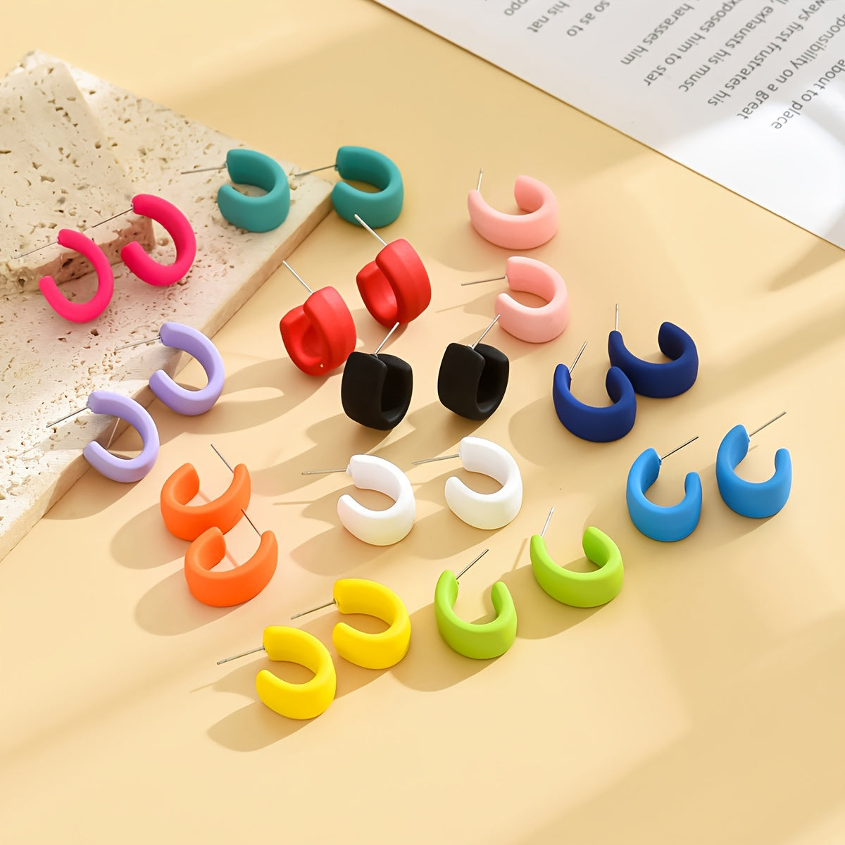 Elevate your casual look with these solid C-shaped acrylic hoop earrings. Made of stainless steel with no plating, these earrings are perfect for daily wear and casual gatherings.