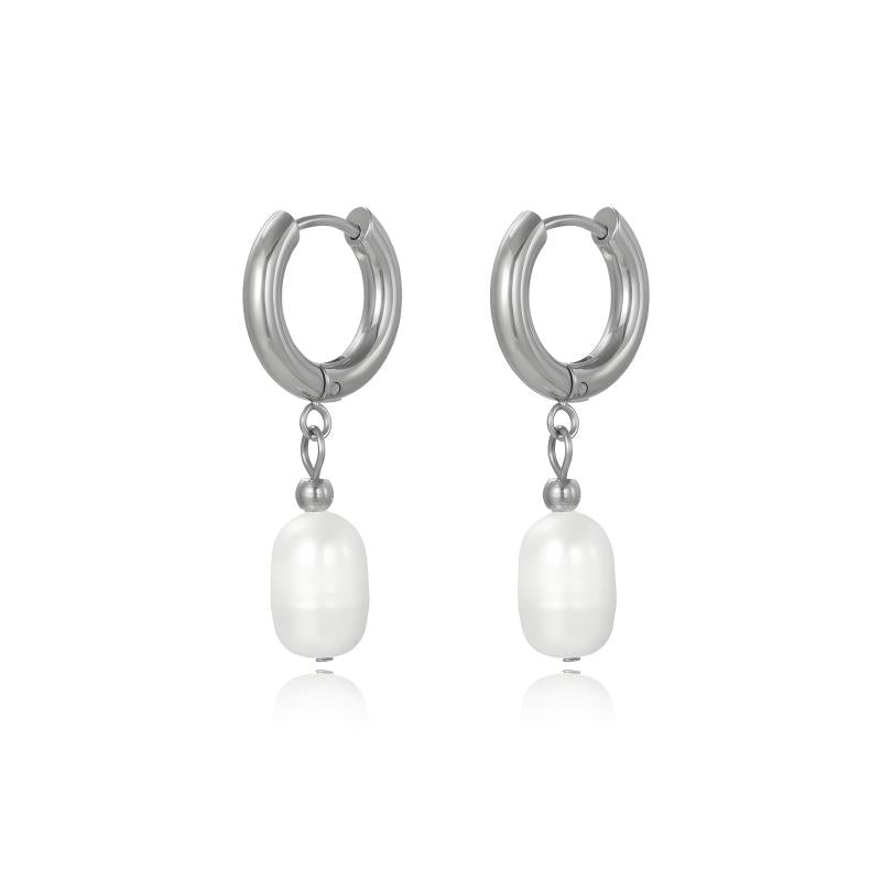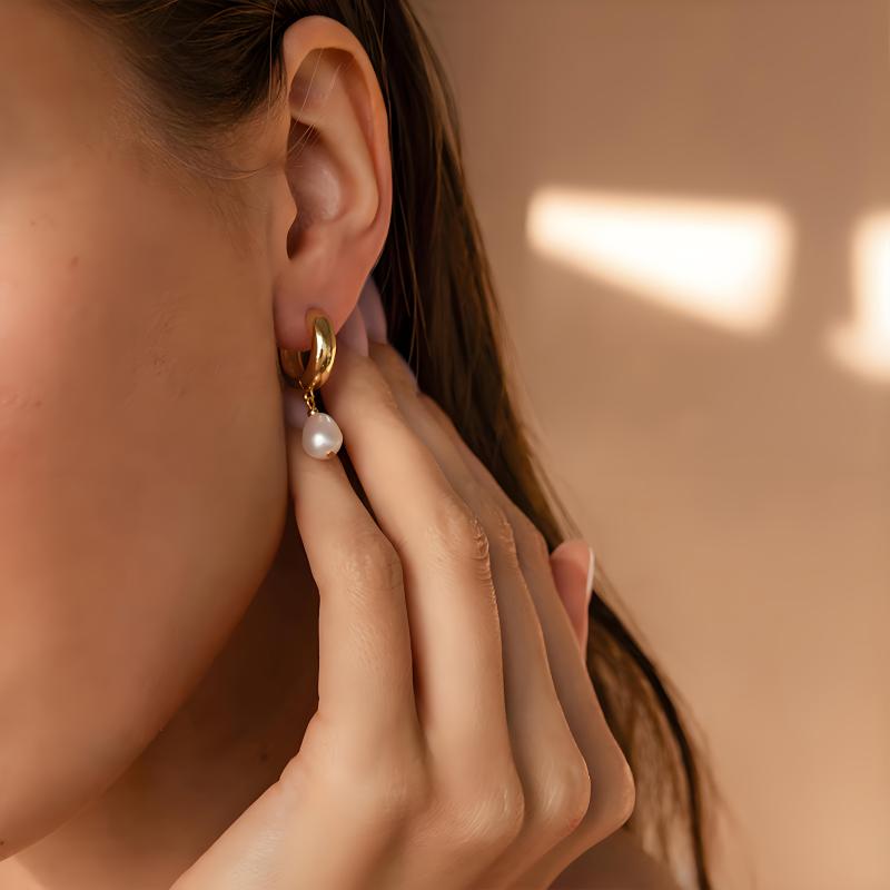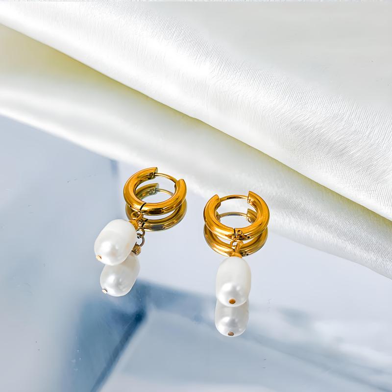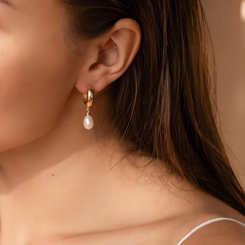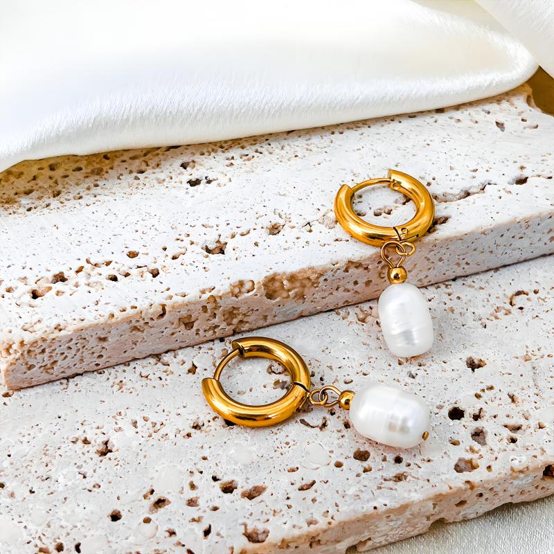 These minimalist stud earrings feature natural irregular freshwater pearls in a golden tone setting. They are lightweight and perfect for everyday wear.