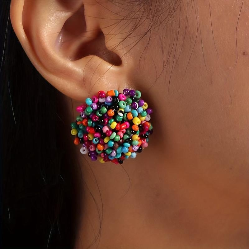 These bohemian style ball stud earrings feature full beads decoration, making them perfect for holiday vocation wear. An ideal gift for females.