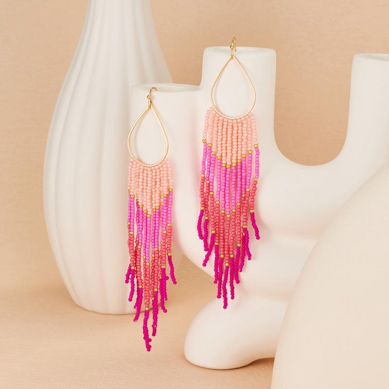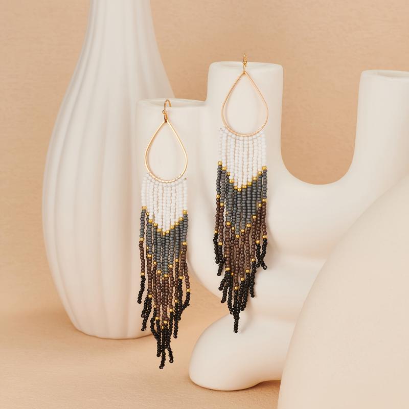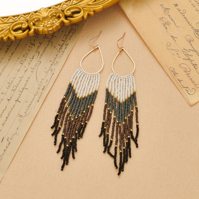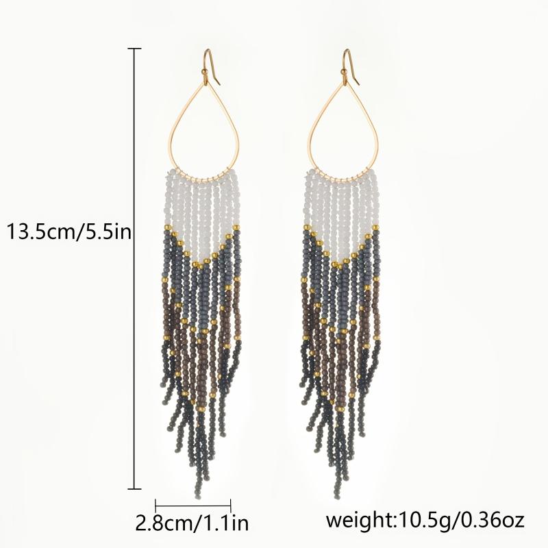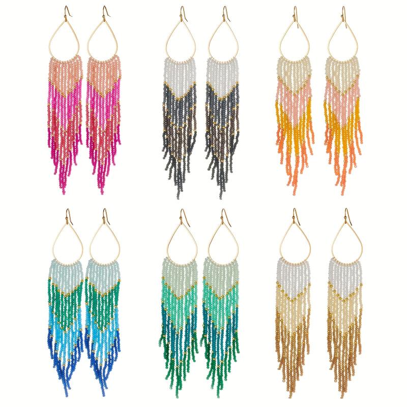 Bohemian Beaded Tassel Earrings - Women's Fashionable Dangling Earrings