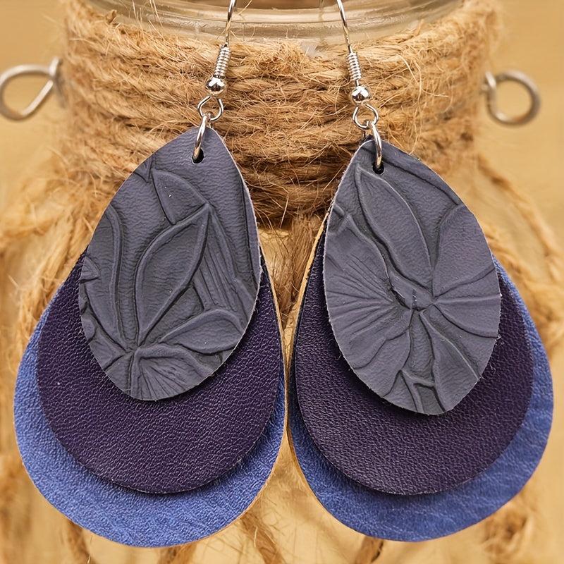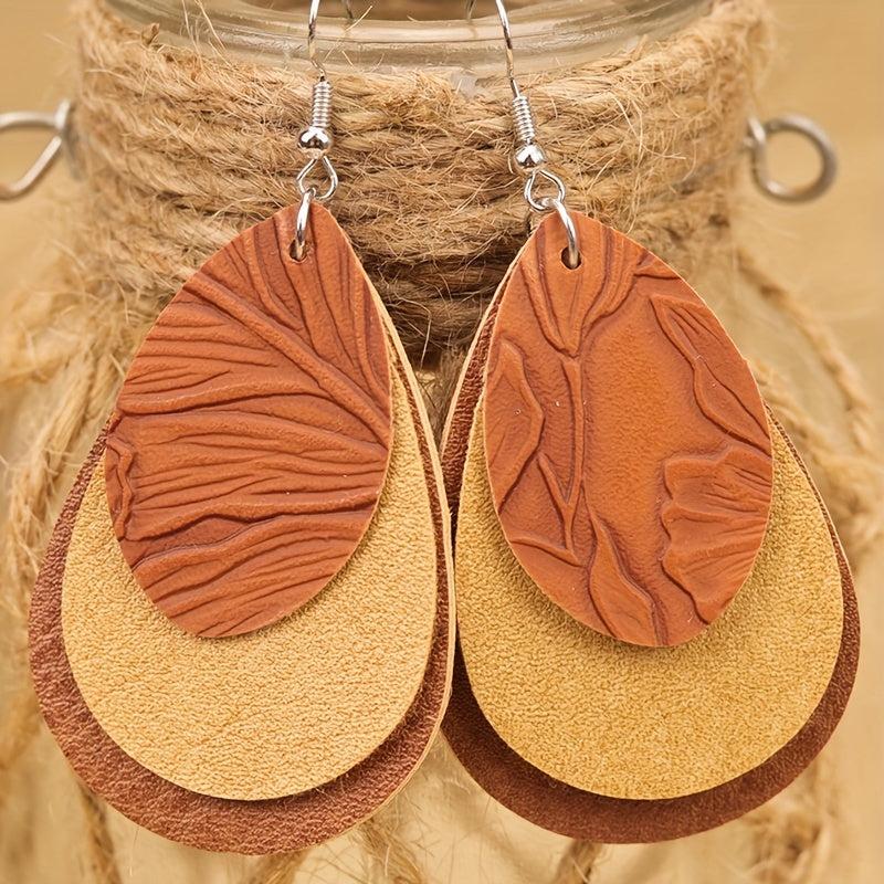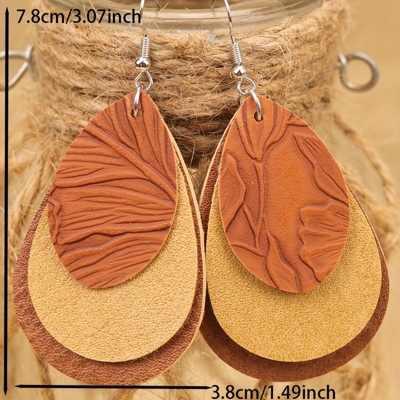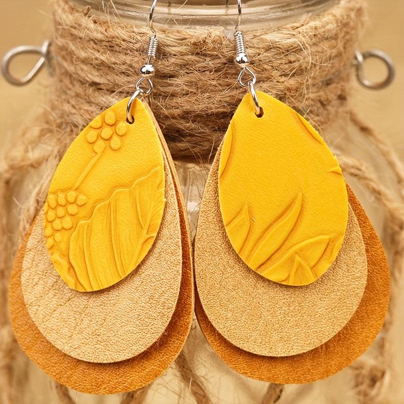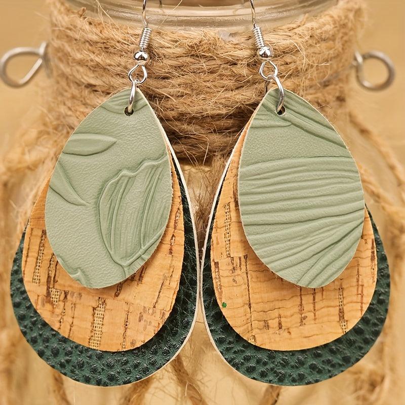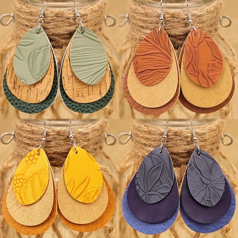 Add a touch of vintage Bohemian style with these 3-layer teardrop earrings in green, brown, and yellow. Made of high-quality PU leather.