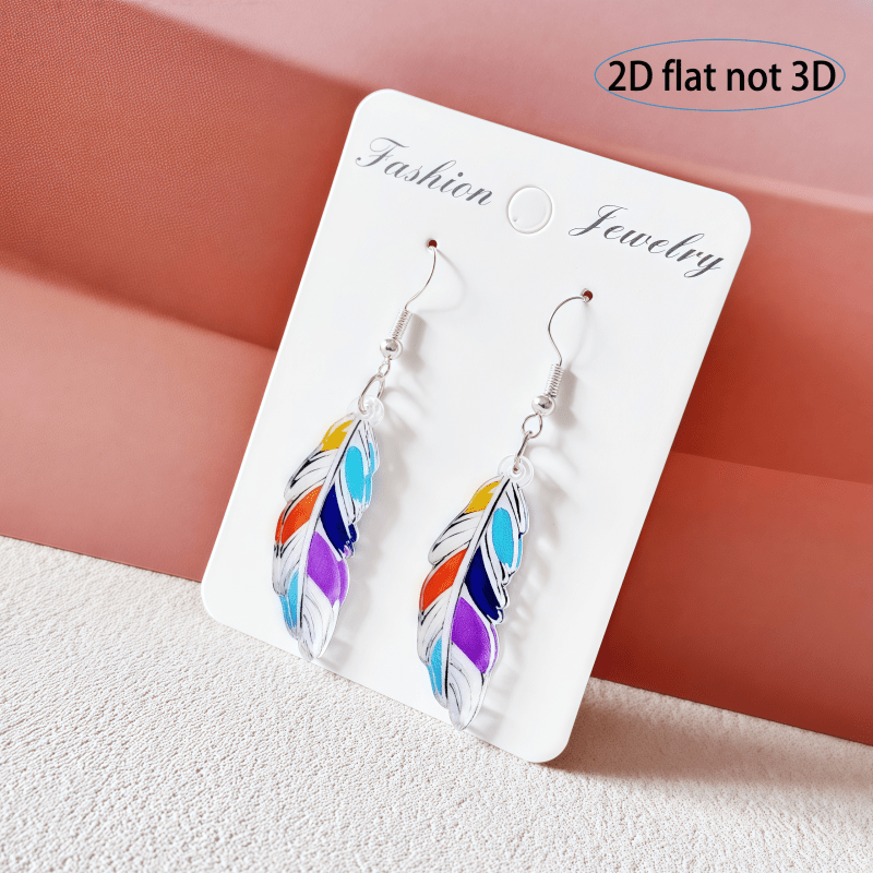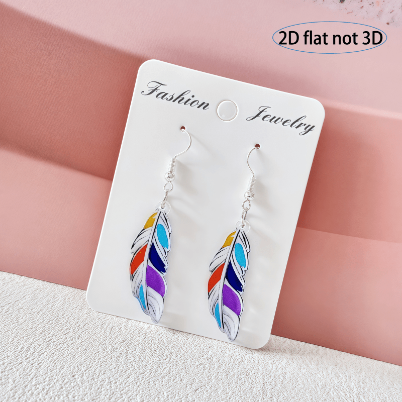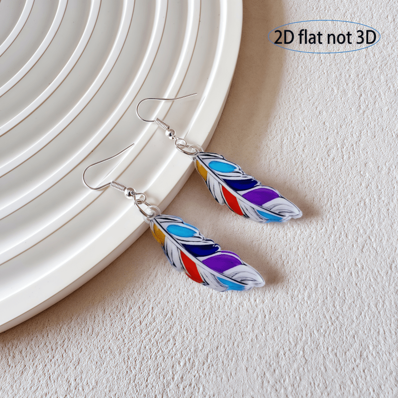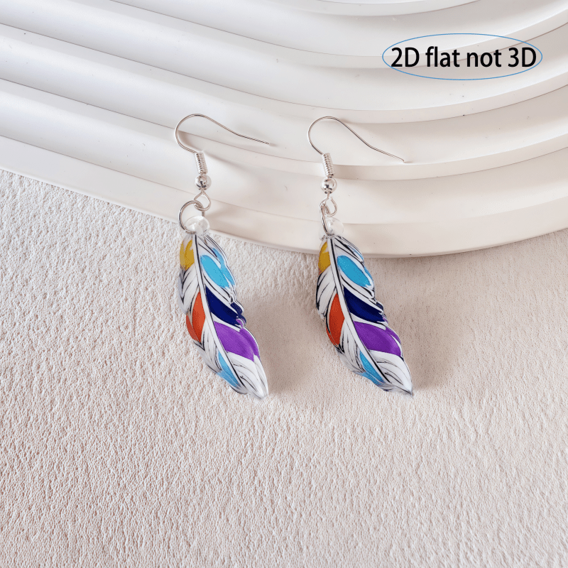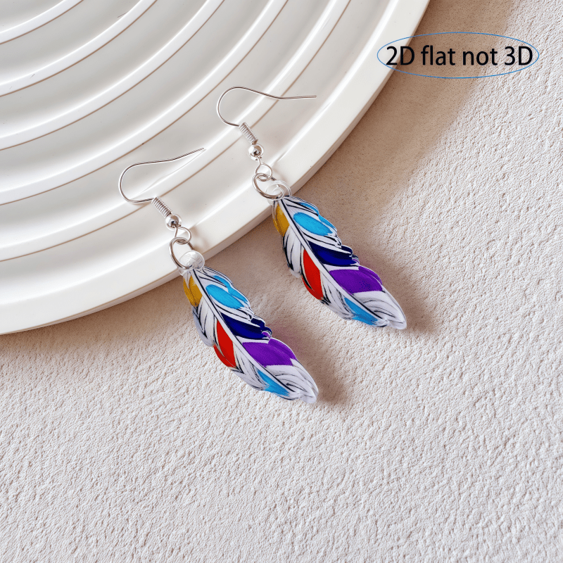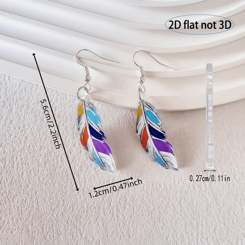 Add a touch of bohemian flair to your look with these vibrant feather dangle earrings. Made of acrylic with colorful feathers and iron hooks, these earrings are perfect for daily wear or special occasions.