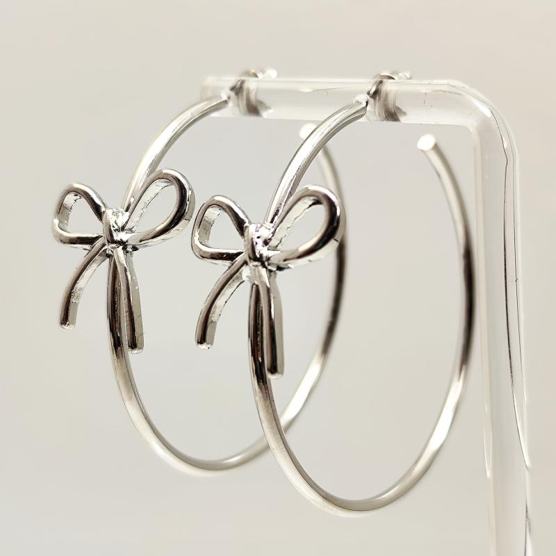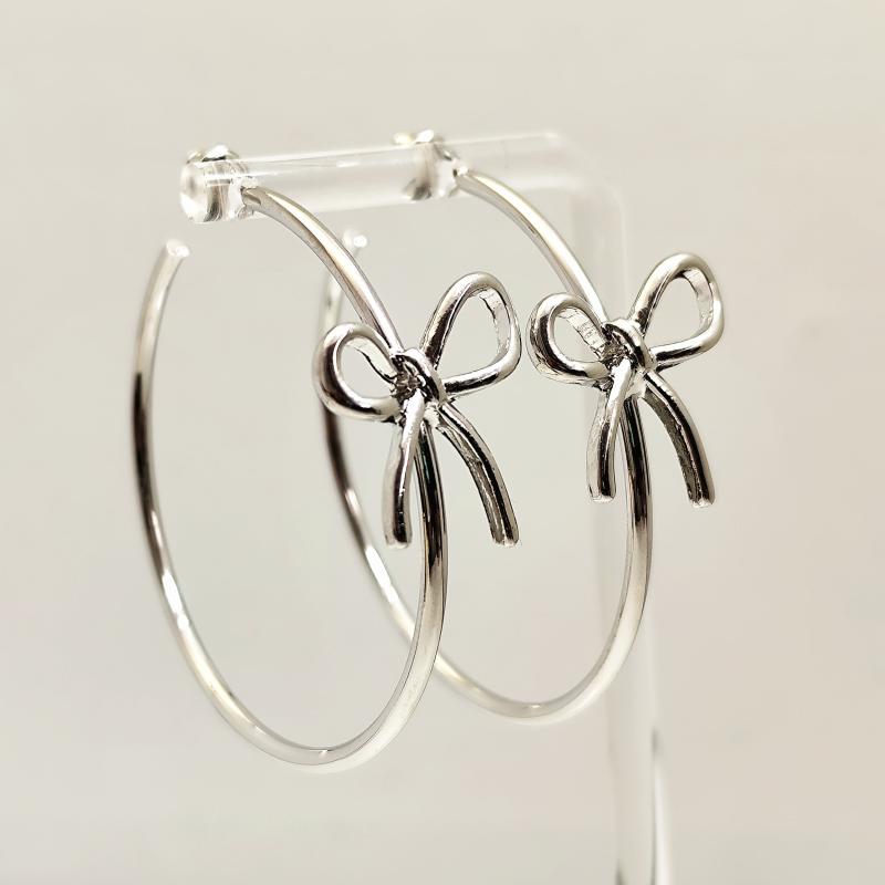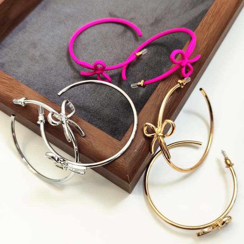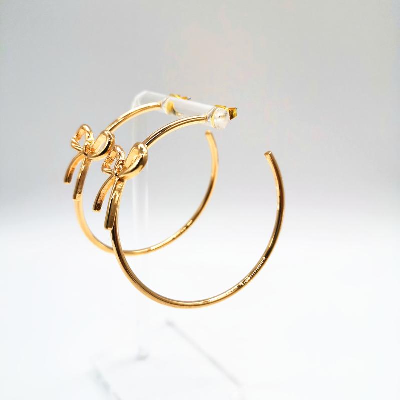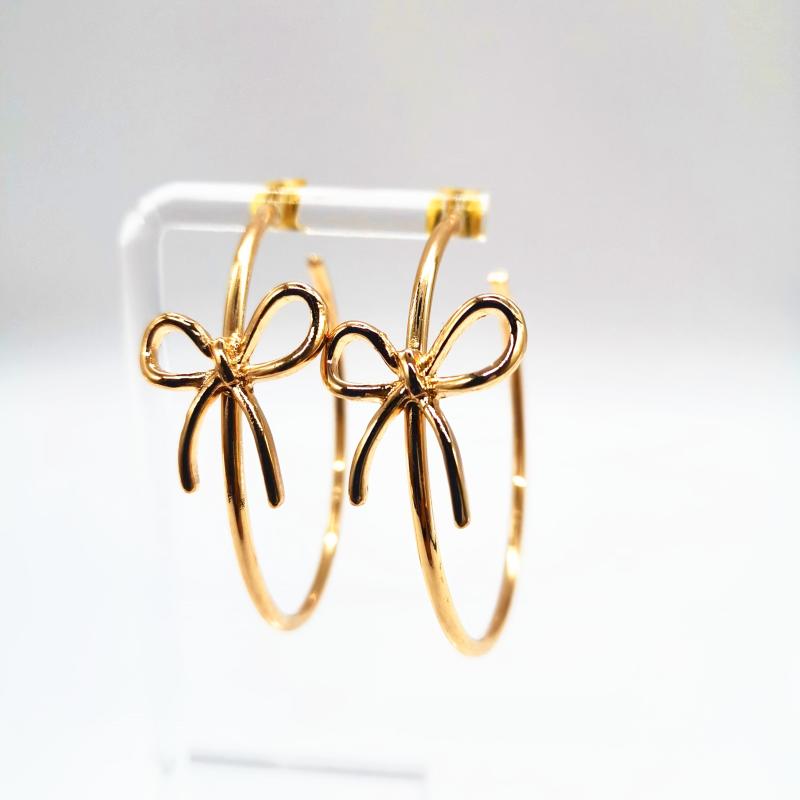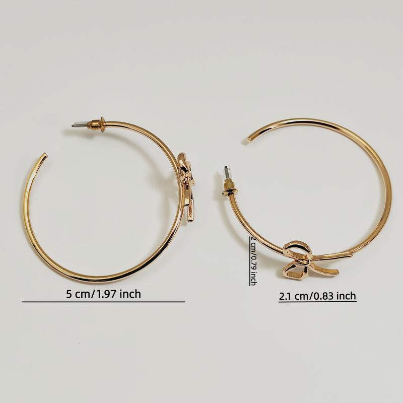 Add a touch of boho punk style to your outfit with these 14K golden plated large hoop earrings featuring a geometric bow iron. Perfect for making a statement!