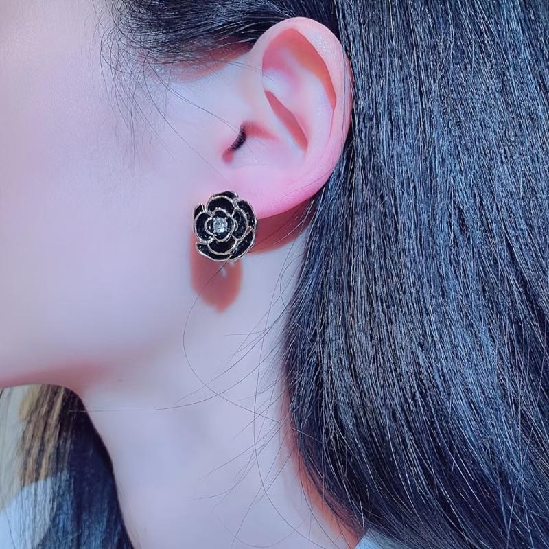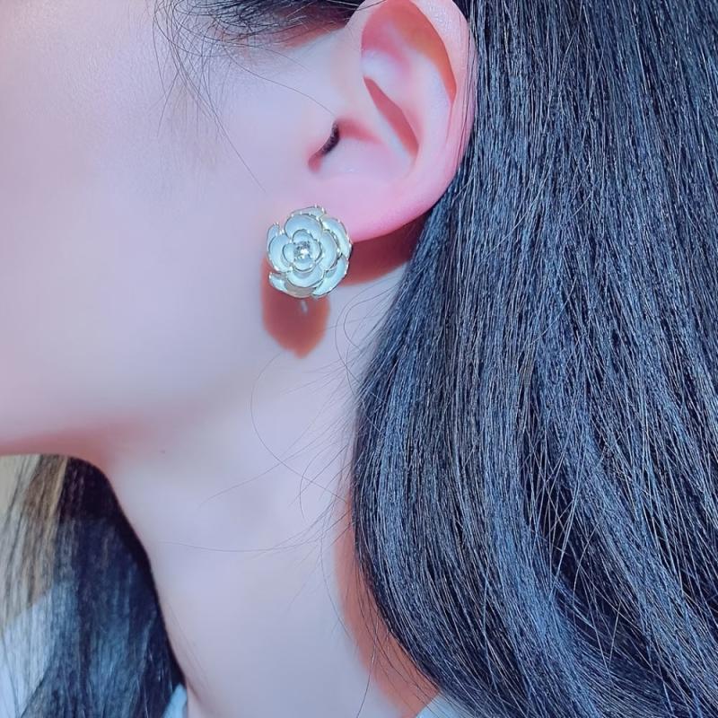 Camellia earrings made of brass metal, anti-allergic material. These mature and charming retro earrings are perfect for women.