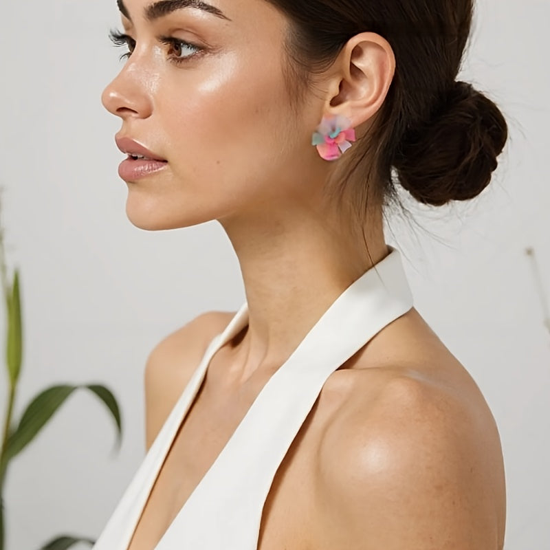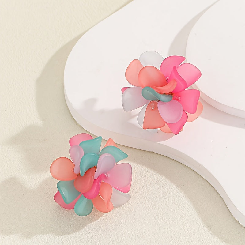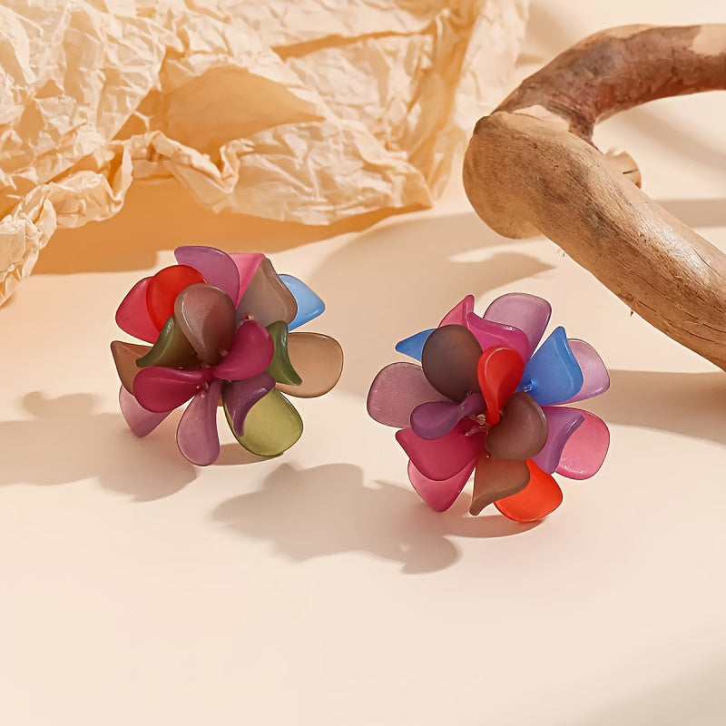 Add a touch of freshness and minimalism to your look with these acrylic earrings featuring a vibrant flower pattern.