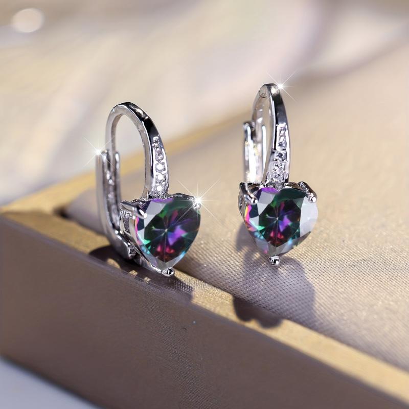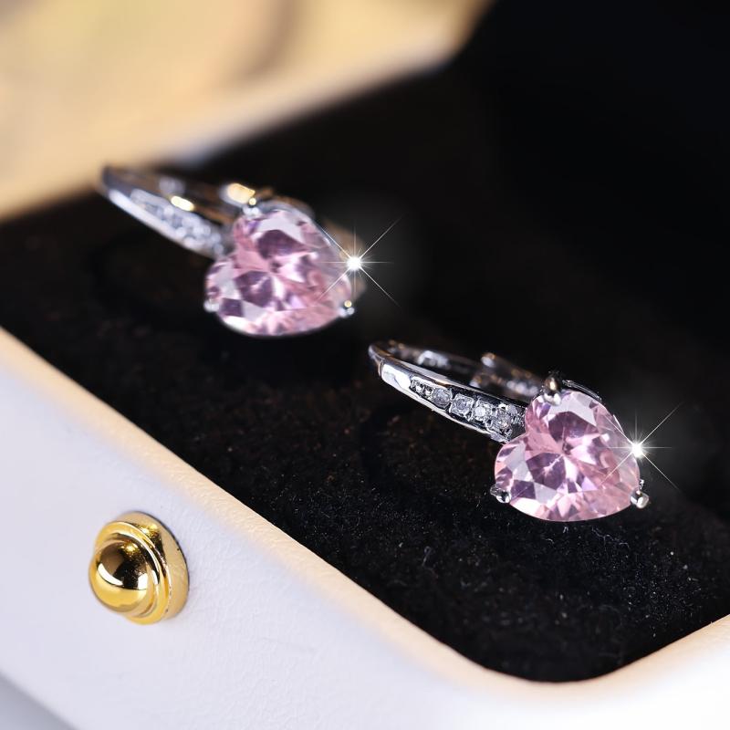 These elegant copper hoop earrings feature delicate heart-shaped design with zirconia inlays, perfect for any occasion.
