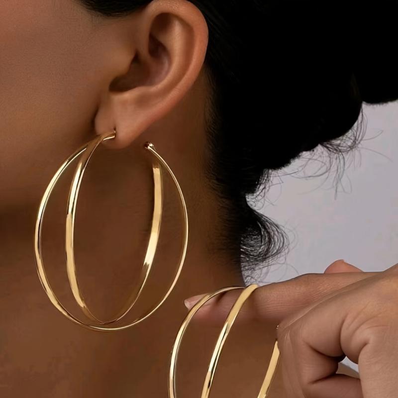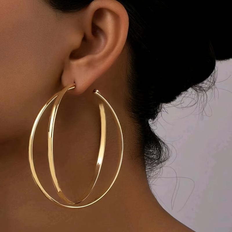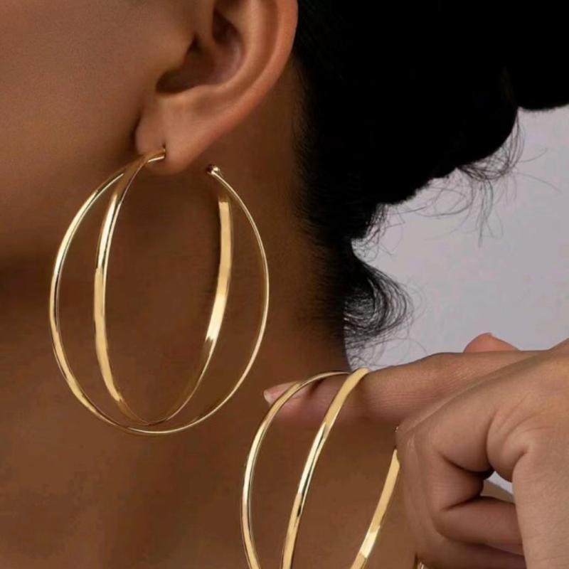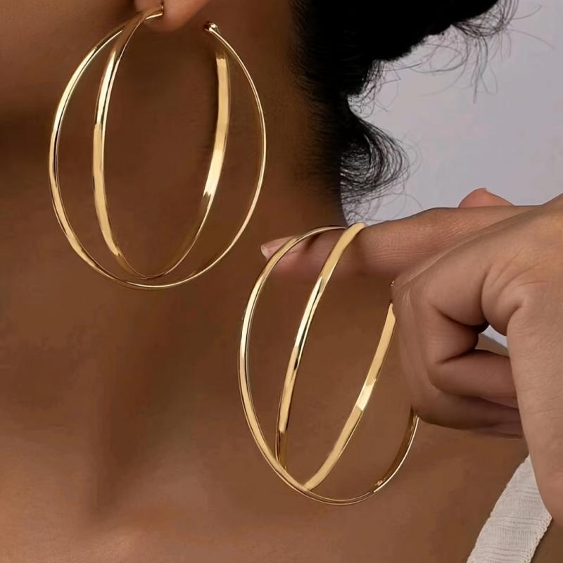Add a touch of elegance to your daily wear with these double layer golden hoop earrings. Made of high-quality alloy, these earrings are a perfect accessory for any outfit.