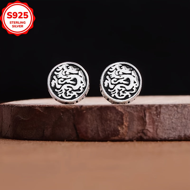 These hypoallergenic stud earrings feature a dragon pattern design in 925 sterling silver. Perfect for Mardi Gras or everyday wear.