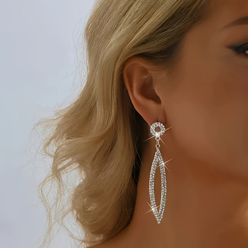 These minimalist oval long rhinestone earrings are a stylish addition to your outfit, perfect for banquets and special occasions.