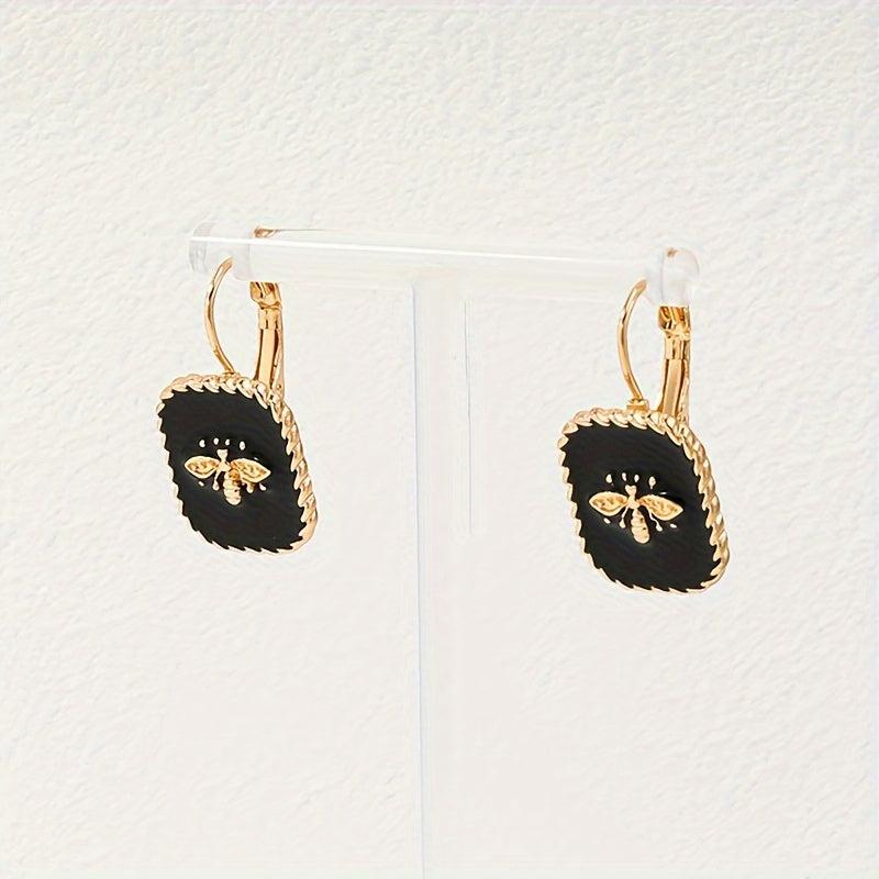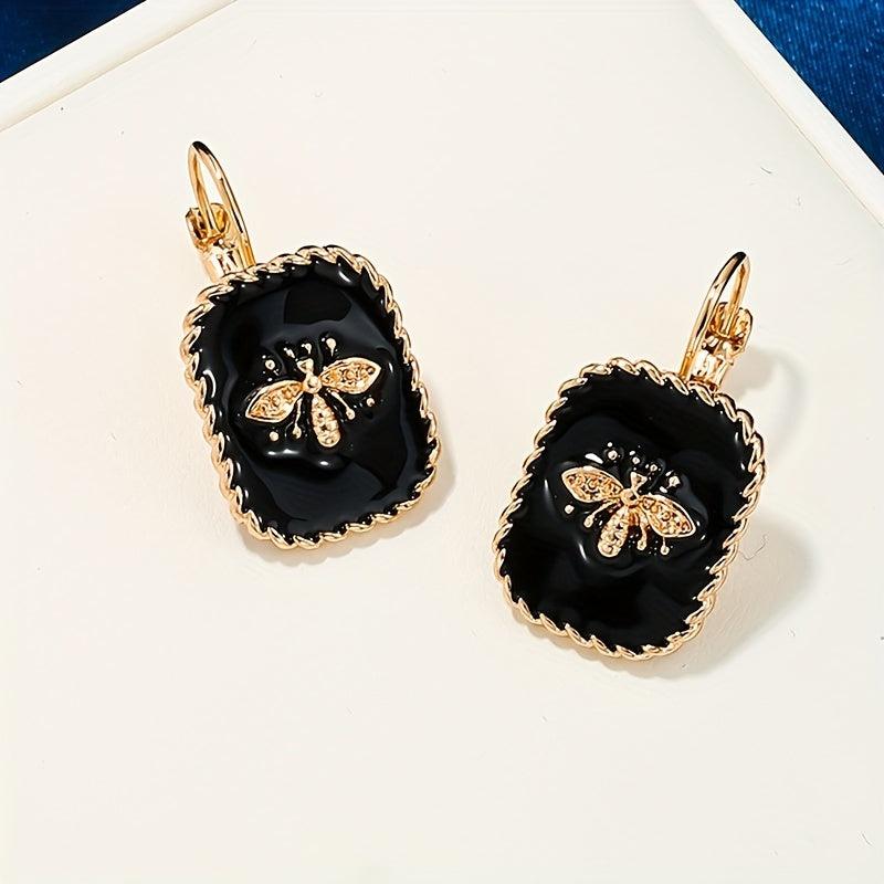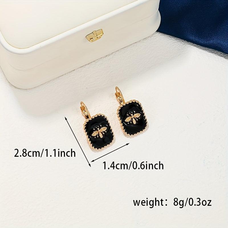 These 14K golden plated square enamel bee earrings are perfect for daily wear or special occasions. The non-feather design makes them comfortable to wear all day long. They make a great Valentine's gift and can be worn all year round.