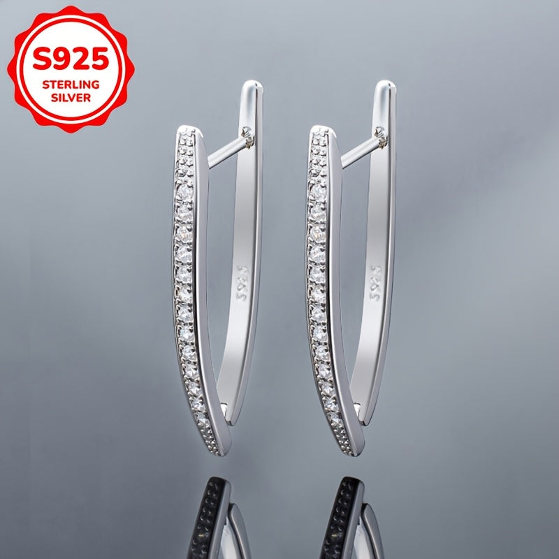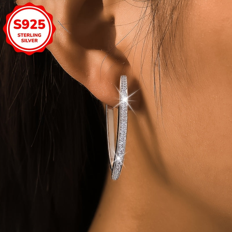 Make a stylish statement with these LIGHT SENSE V shaped ring earrings featuring sparkling Synthetic Zirconia. Perfect for everyday wear, banquets, weddings, and parties.