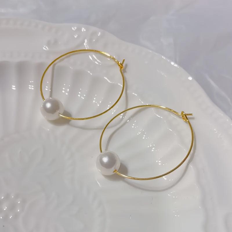 These stunning faux pearl hoop earrings are perfect for both everyday wear and holiday occasions. They make a great birthday gift for someone special.