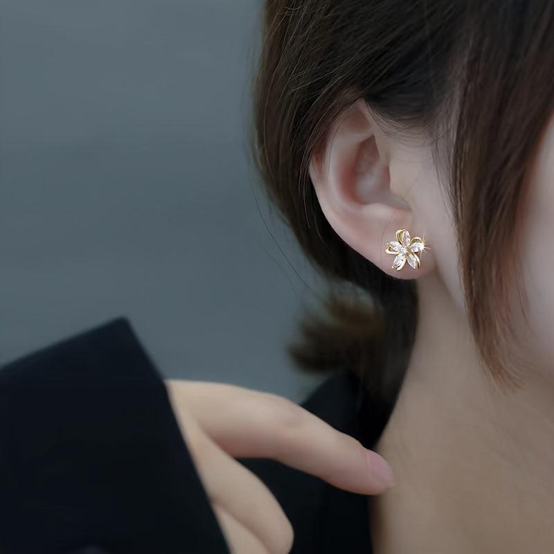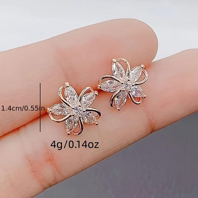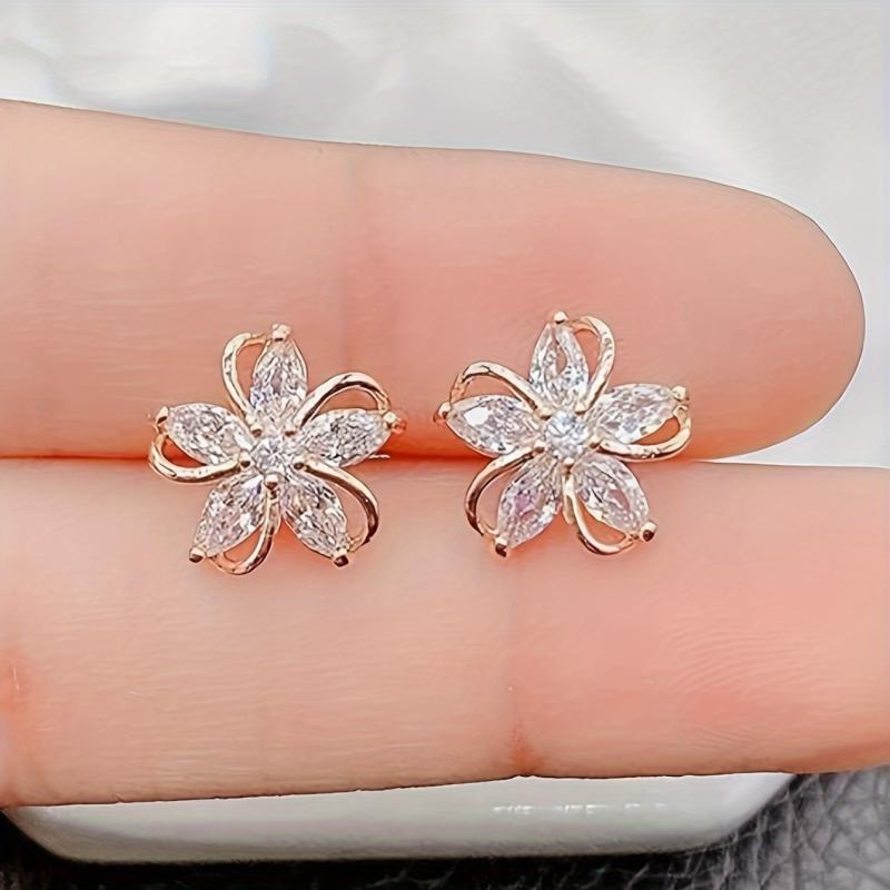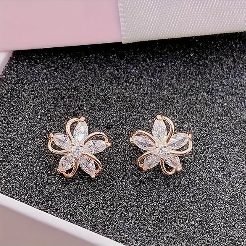 Add a touch of elegance to your outfit with these floral stud earrings featuring sparkling zirconia. Perfect for both everyday wear and special occasions.