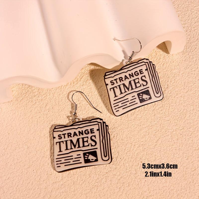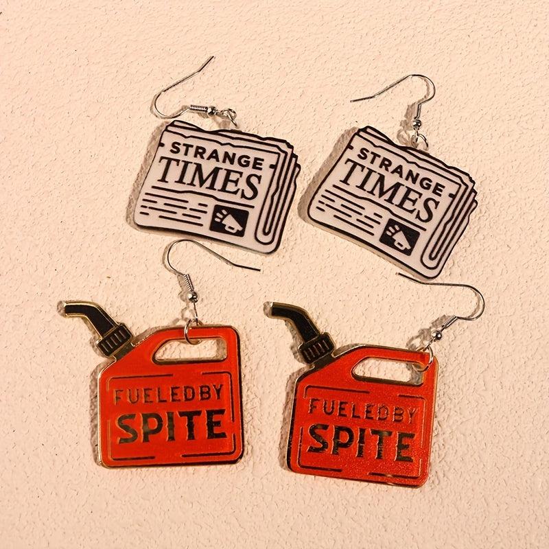 These unique dangle earrings are inspired by newspaper gasoline cans, perfect for adding a creative touch to any outfit. Ideal as a gift for women who love quirky accessories.
