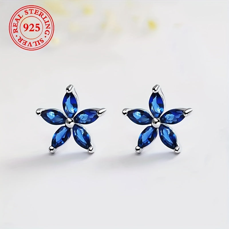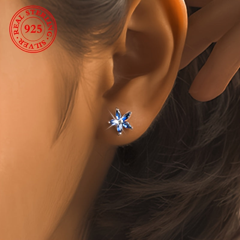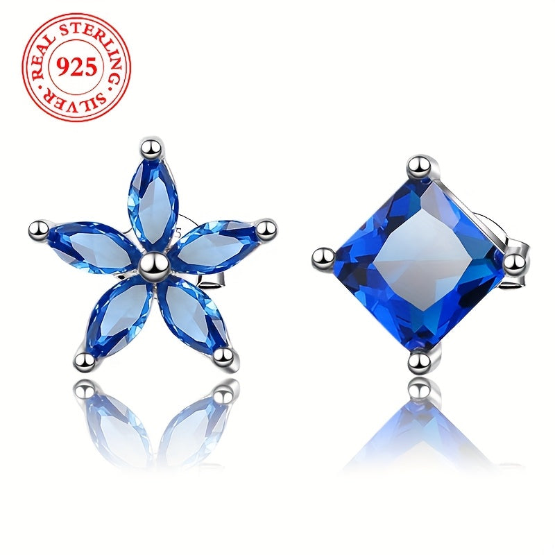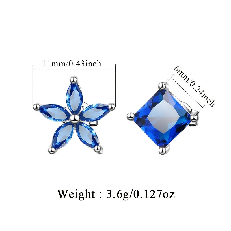 These fashionable earrings feature a light geometric irregularity with AB flower square inlaid Synthetic Zirconia on 925 Silvery base. Weighing 3.6g, these earrings are perfect for daily wear or special occasions.