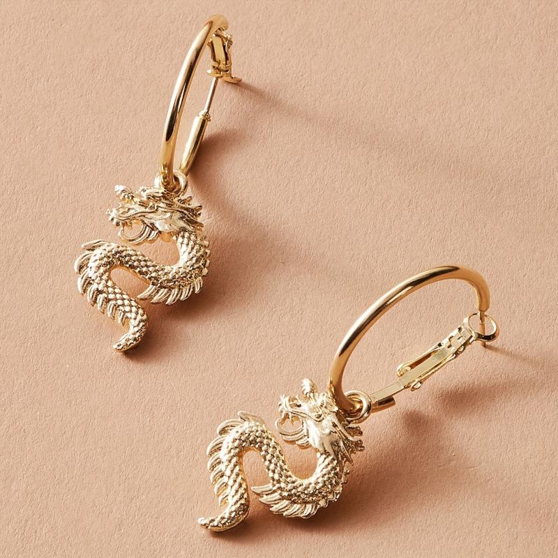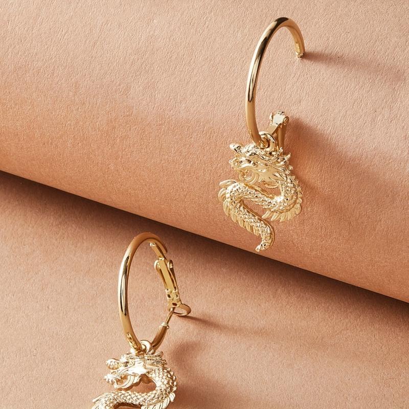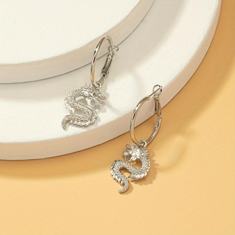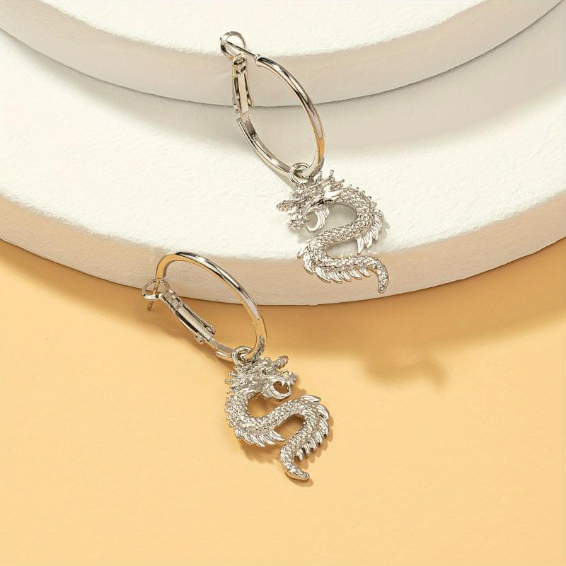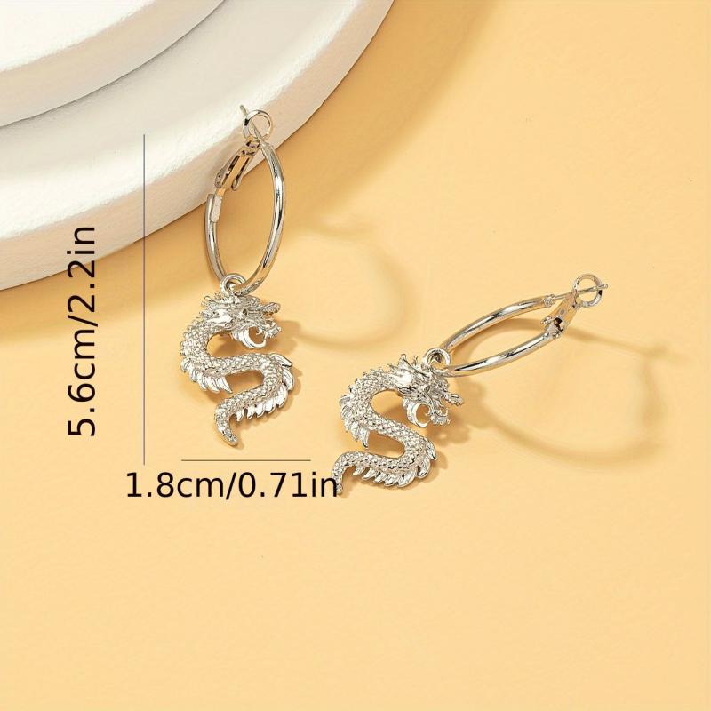 Add a touch of charm and style to your look with these minimalist geometric metal earrings featuring a Chinese dragon design. Perfect for women who appreciate unique and elegant accessories.