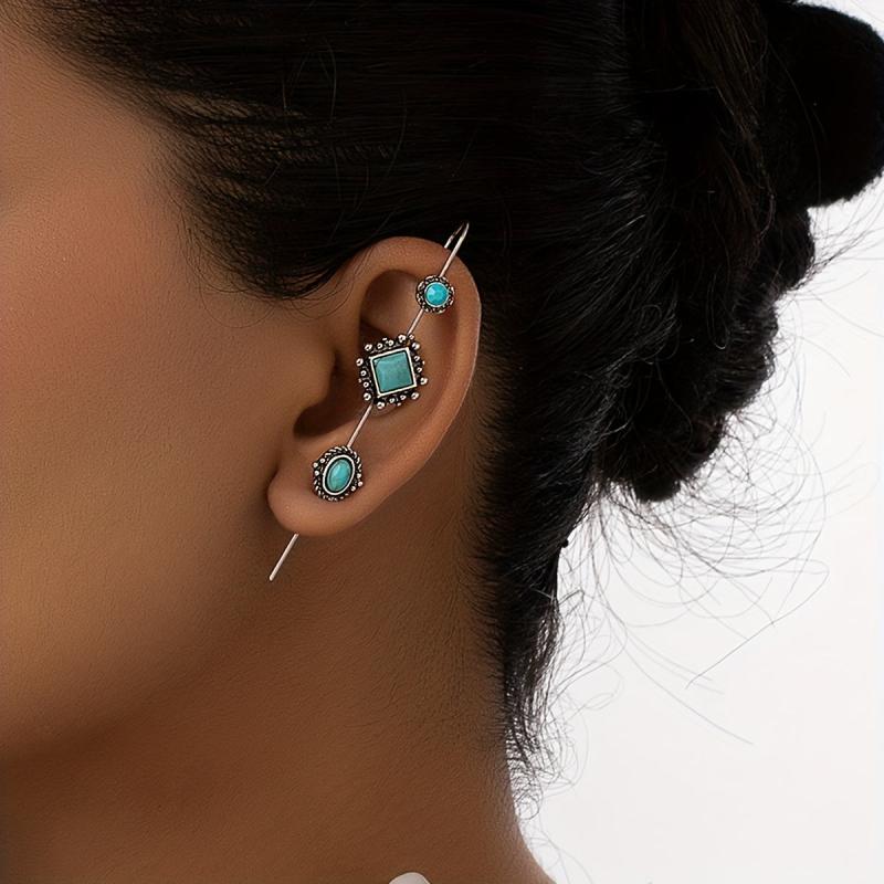 These unique earrings feature natural stone with teal accents, making them perfect for parties and music festivals. They are a great gift for women who love bohemian style.