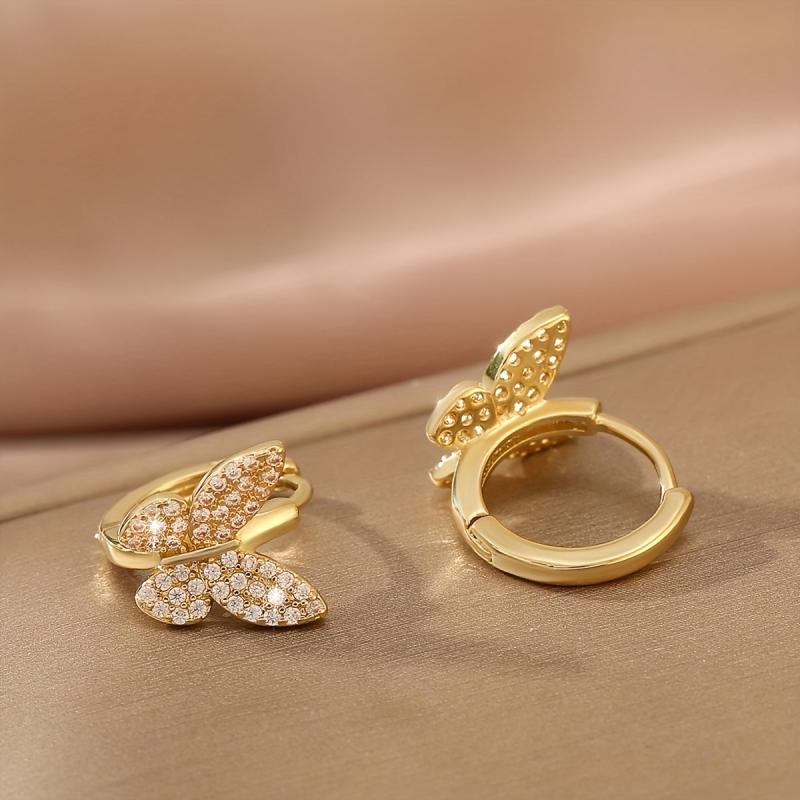 Add a touch of elegance to your look with these stunning butterfly hoop earrings featuring cubic zirconia stones. Made with nickel copper, these earrings are perfect for daily wear.