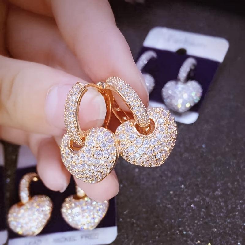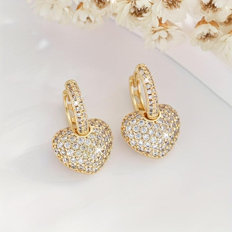 Add a touch of elegance to your look with these stunning heart dangle earrings adorned with sparkling rhinestones. Perfect for parties, weddings, and special occasions. Makes a great Valentine's or formal gift.
