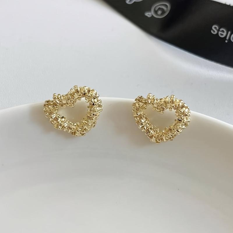 Add a touch of love and style to your outfit with these matte golden heart stud earrings. These delicate earrings are perfect for everyday wear and will inspire a sense of love in your fashion choices.