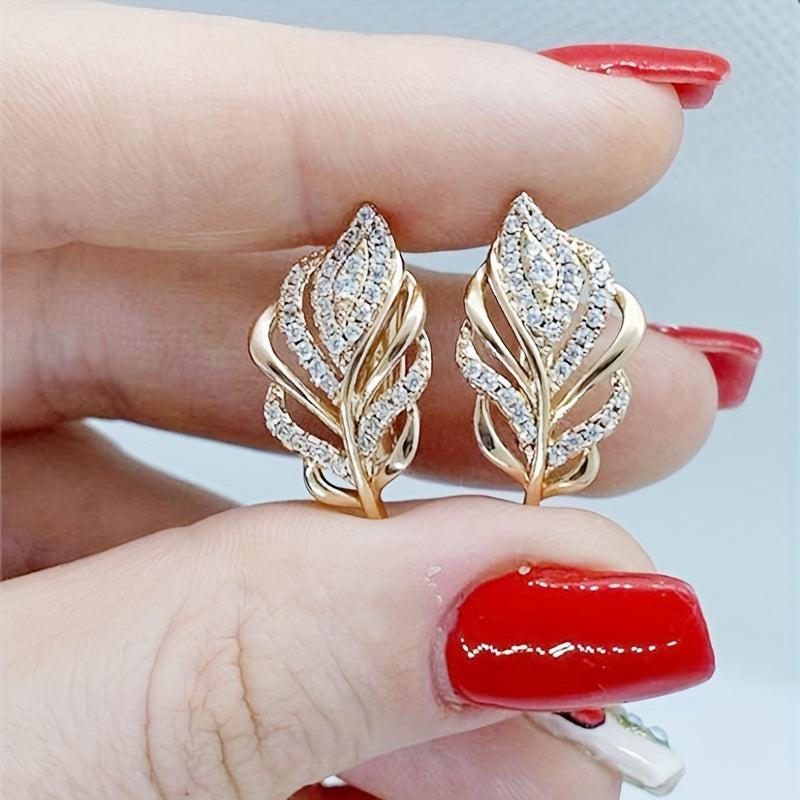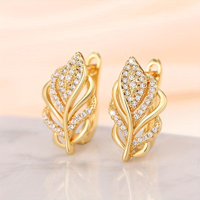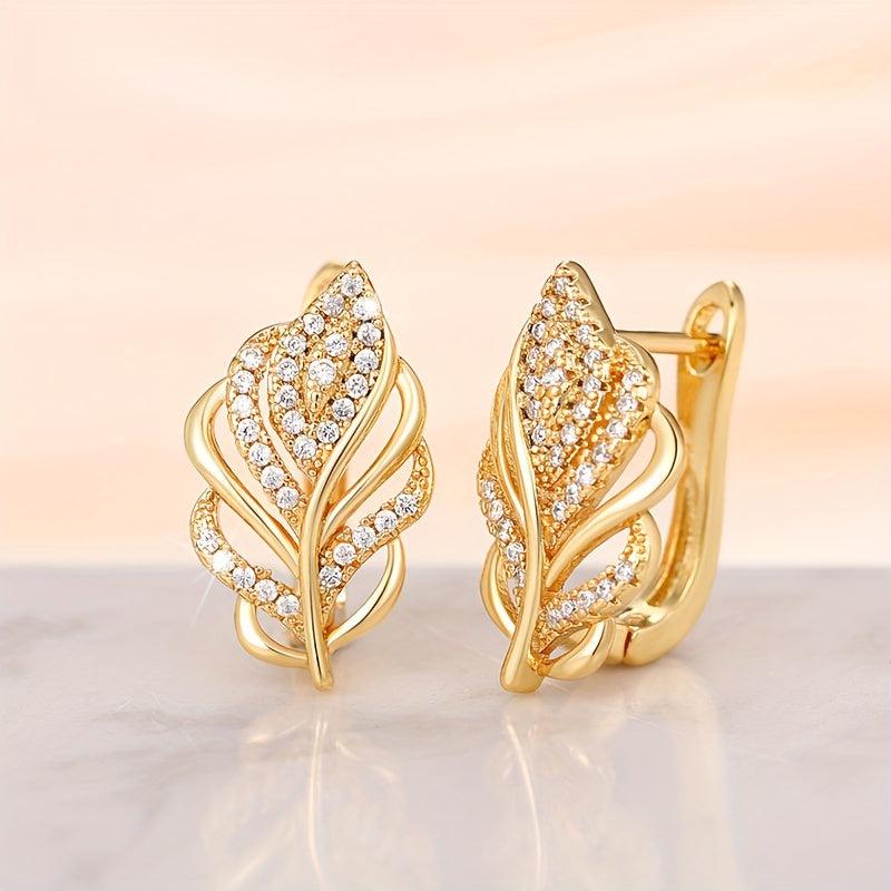 • Elegant golden leaf design with zirconia accents