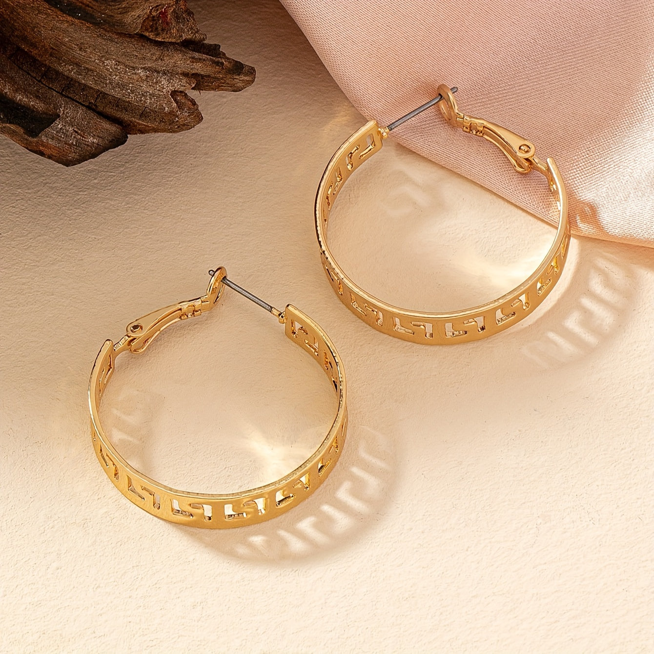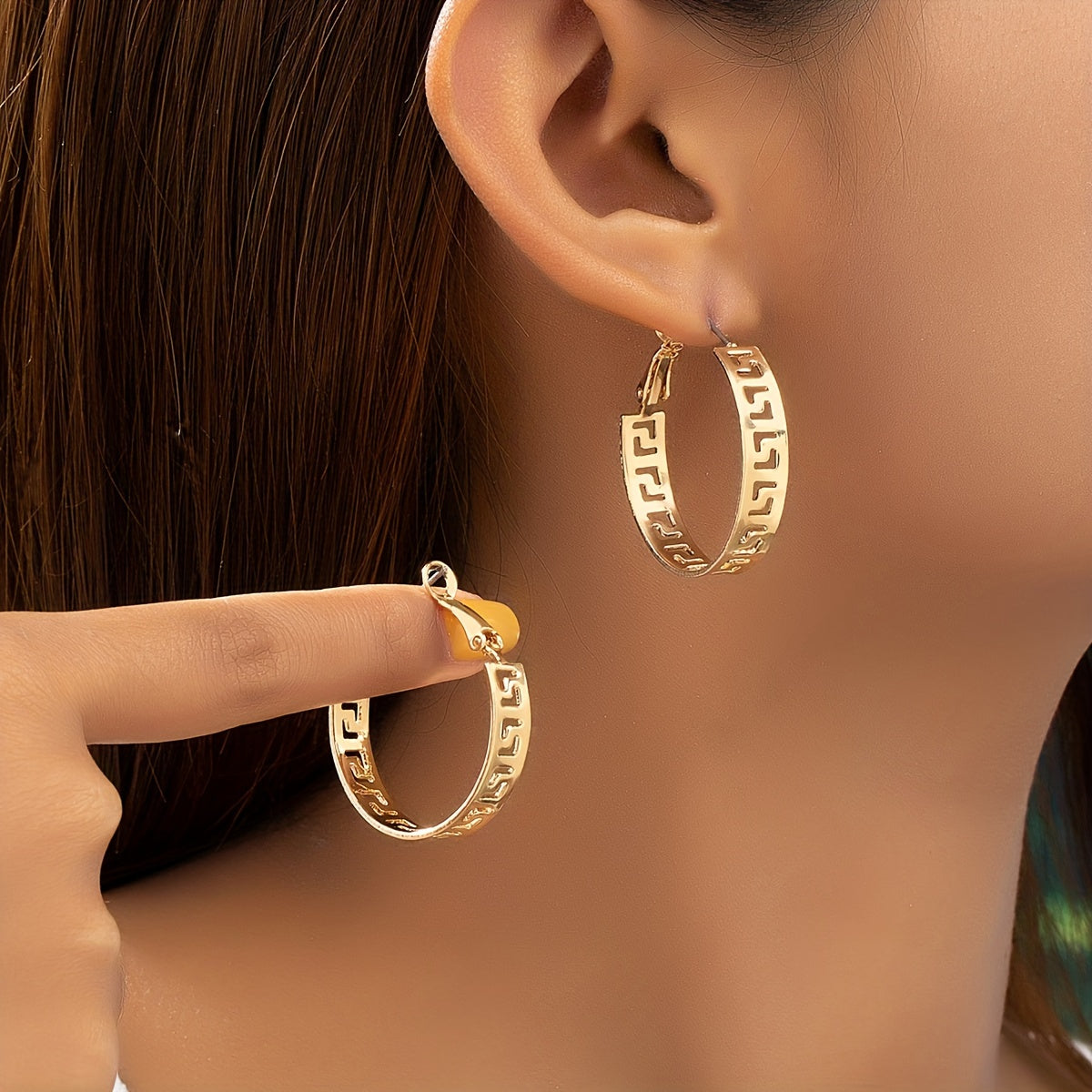 Elevate your look with these versatile geometric hollow hoop earrings featuring a crescent moon design. Crafted from iron, these earrings are perfect for everyday wear and vacation outfits.