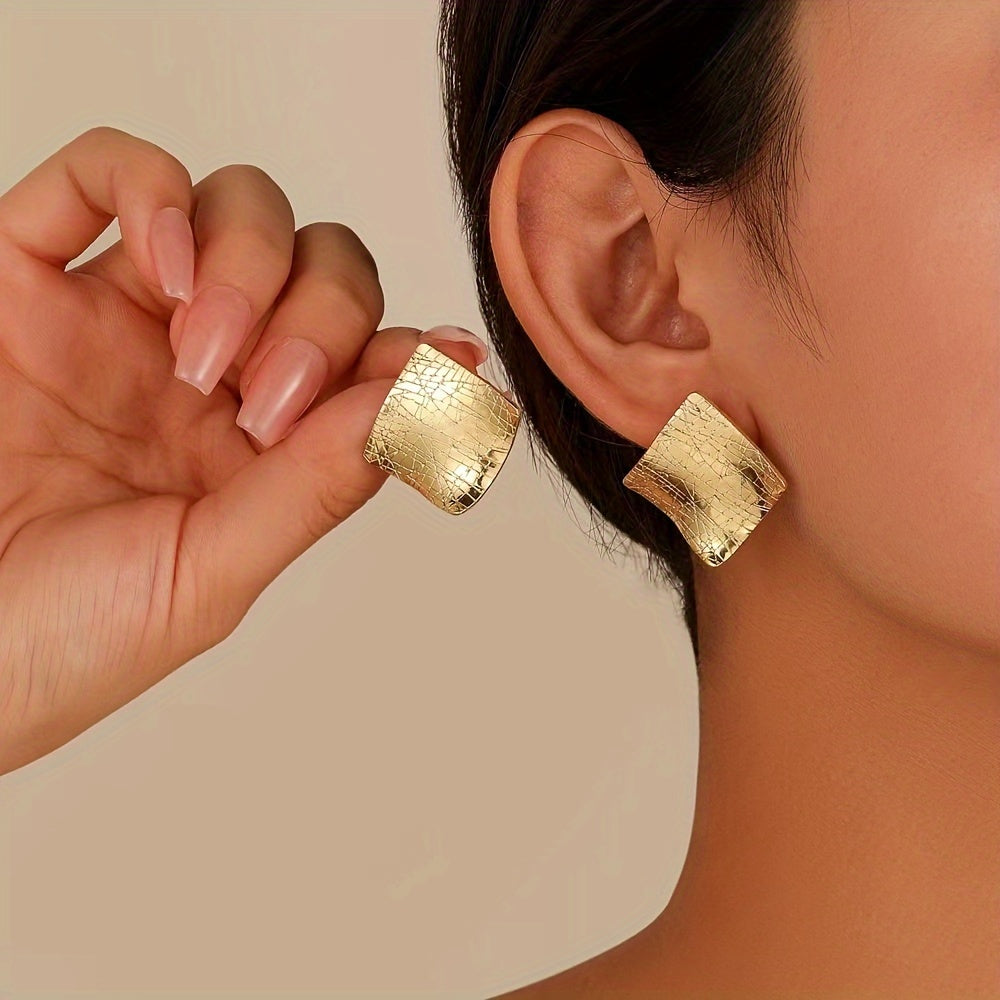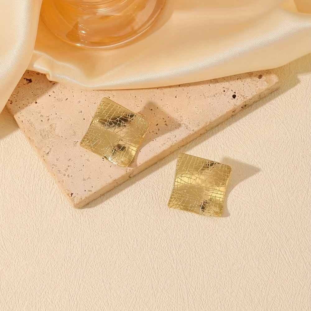 Enhance your style with these stunning Golden Wave Square Stud Earrings. Perfect for making a statement and adding a touch of elegance to your look.