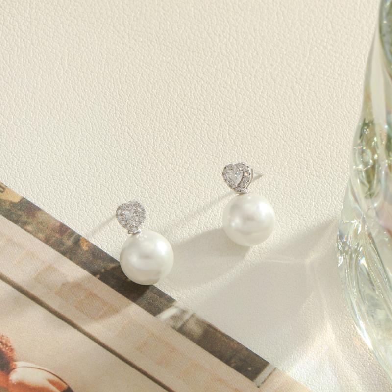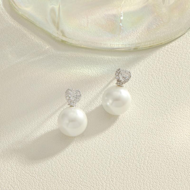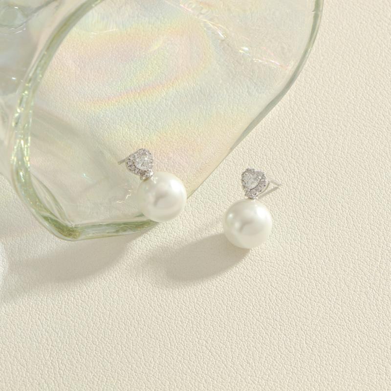 These heart shaped earrings feature synthetic zirconia decoration on hypoallergenic copper material. The silvery toned jewelry is perfect for casual attire and makes a great gift idea.