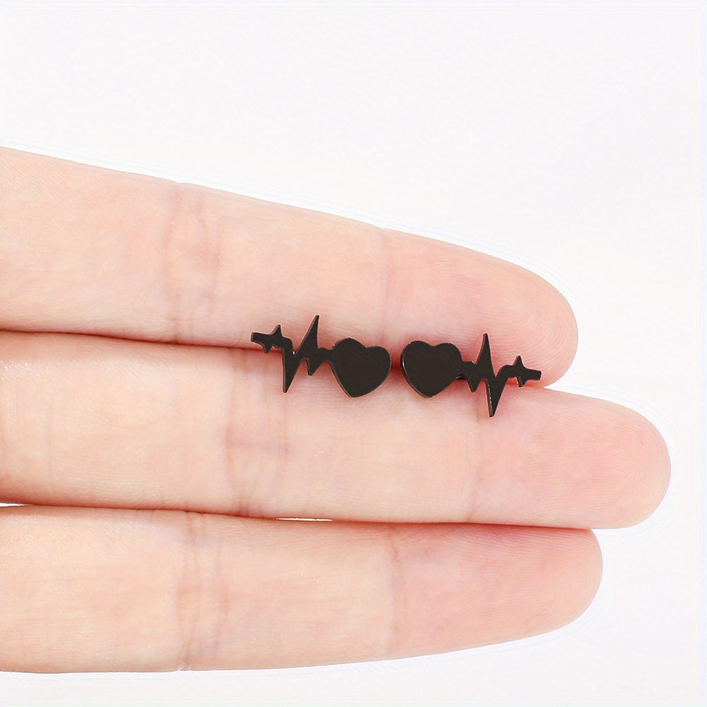 These Heartbeat Stainless Steel Earrings come in 3 color options and are plated with 18k gold. Add a creative touch to your accessories with these stud earrings.
