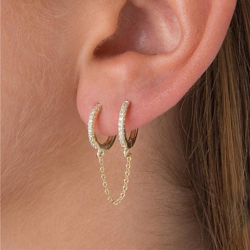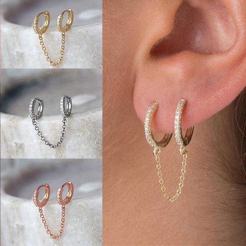 Stylish double hole earrings with zirconium inlay, perfect for parties, punk style, and daily wear.