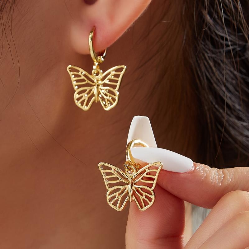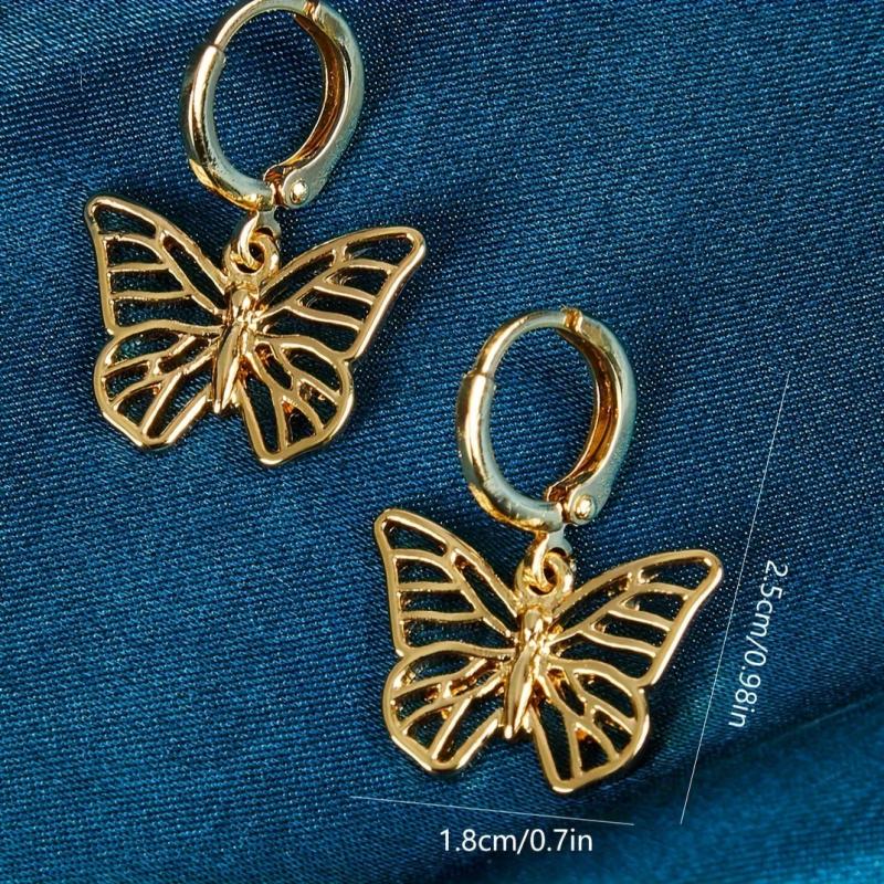 These stunning earrings feature a hollow butterfly design with dangle detail. Made from zinc alloy with copper posts, they are a perfect accessory for casual attire or special occasions.