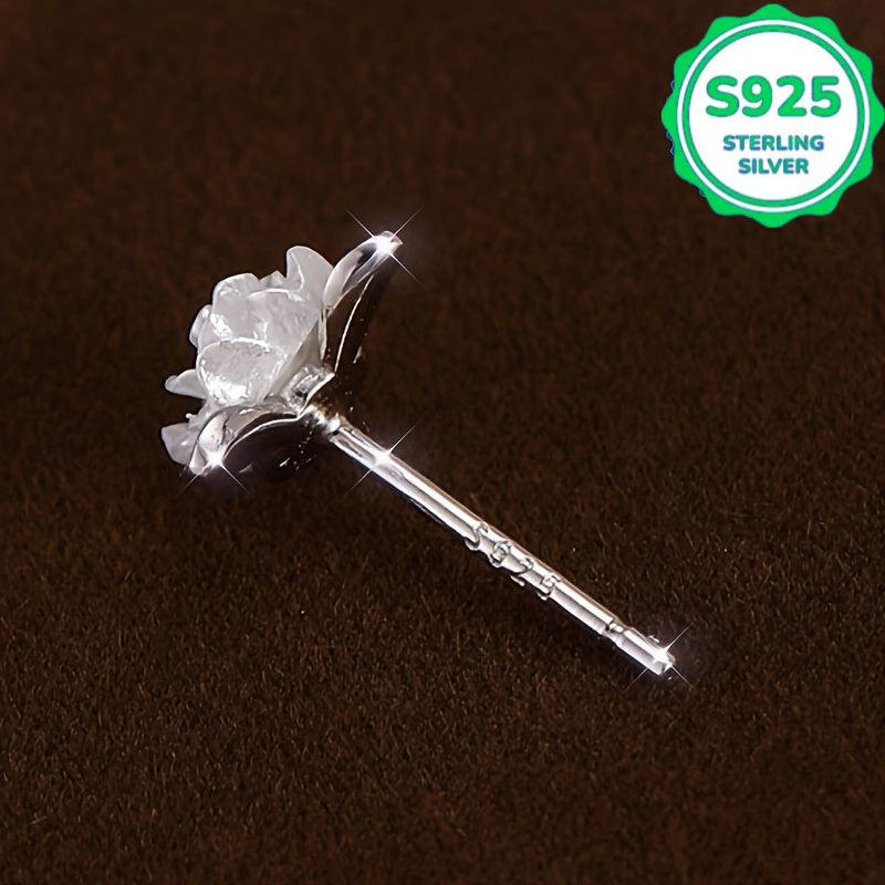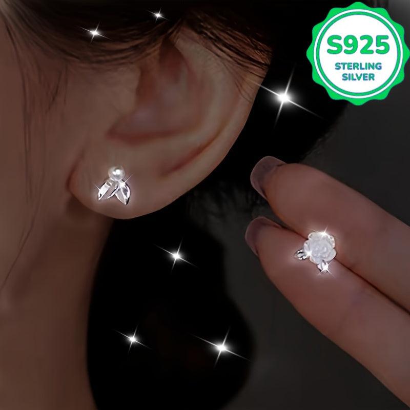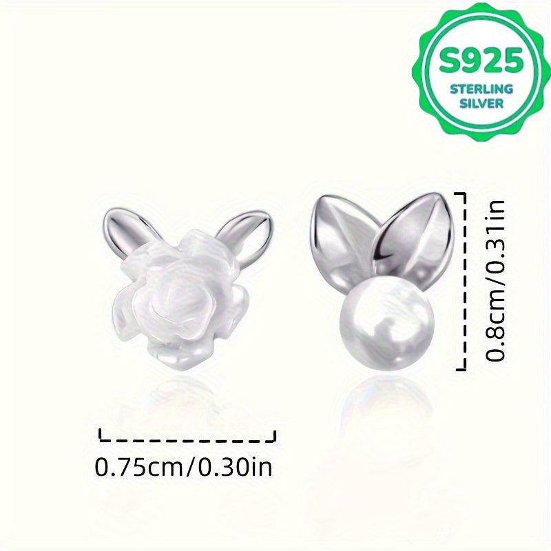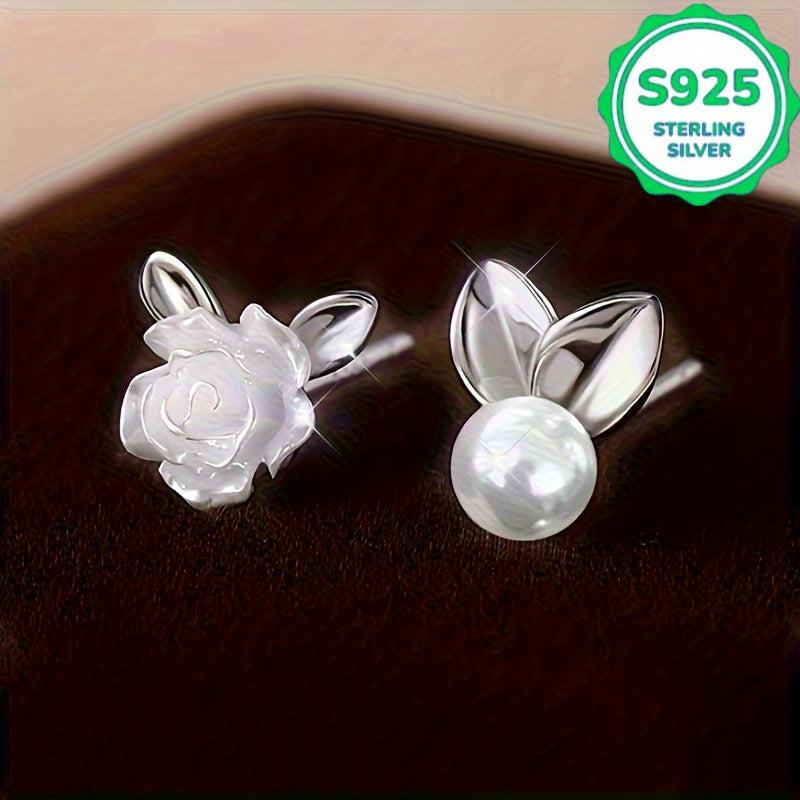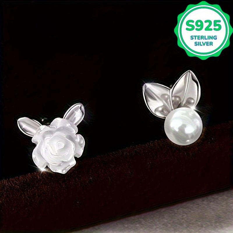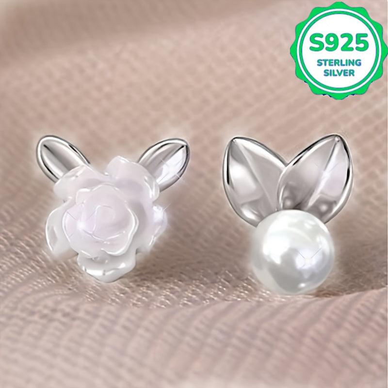 Hypoallergenic S925 Asymmetrical Camellia & Pearls Earrings Boho Style
